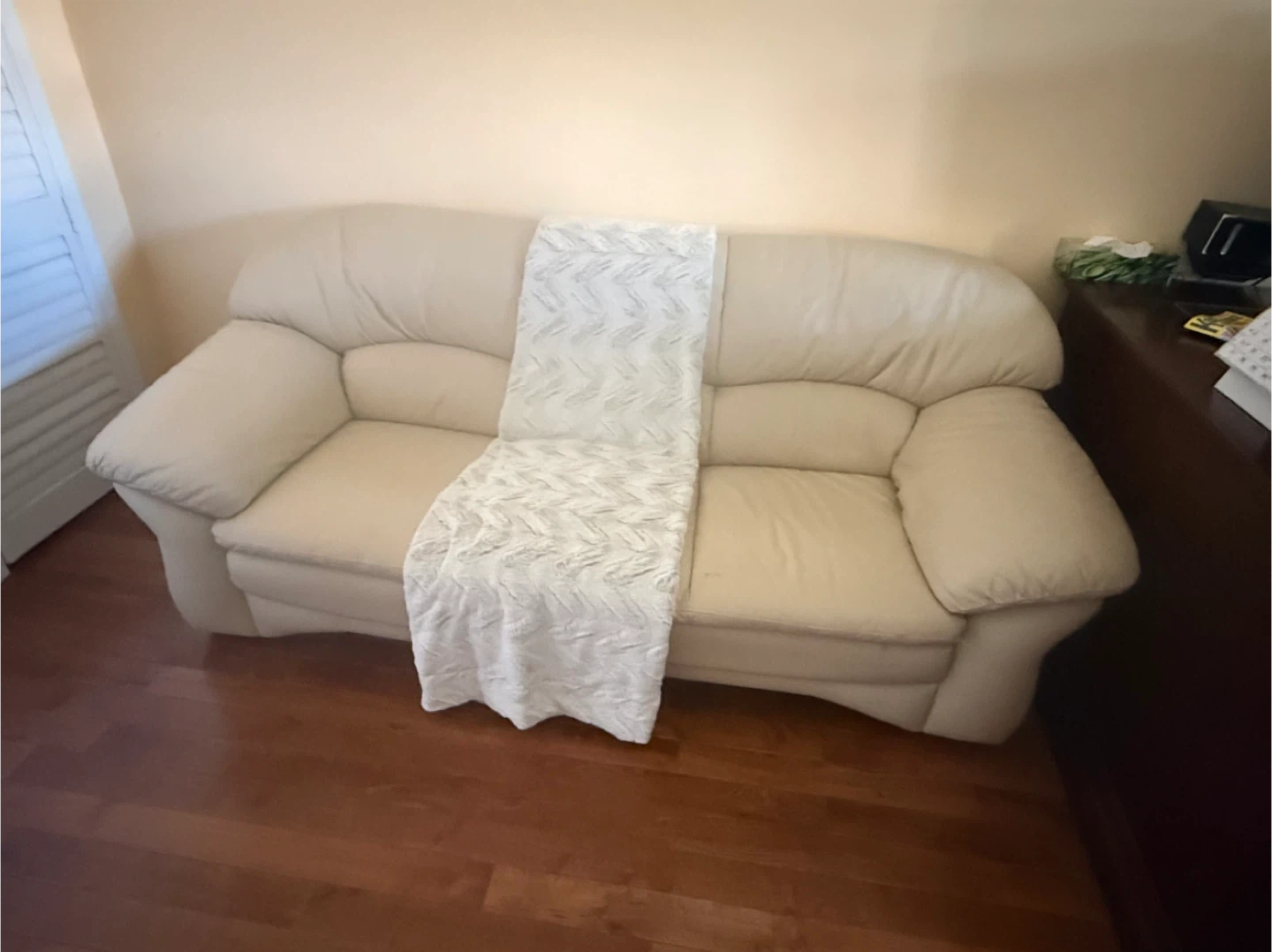 Queen size Bed Frame, Leather Headboard, Mattress and BoxSpring