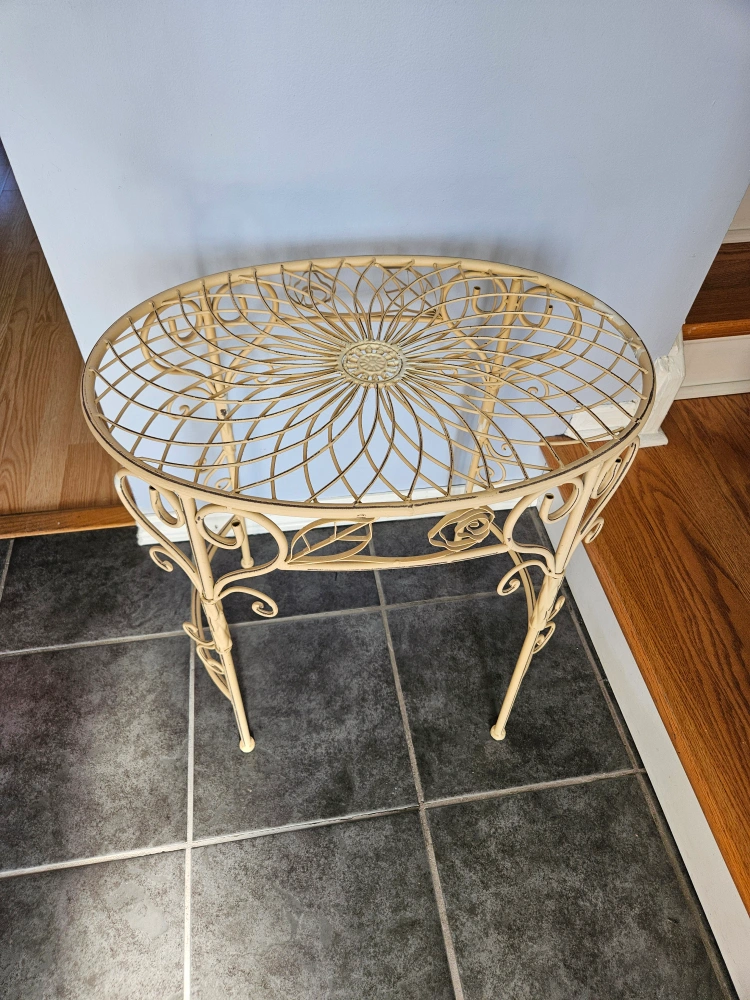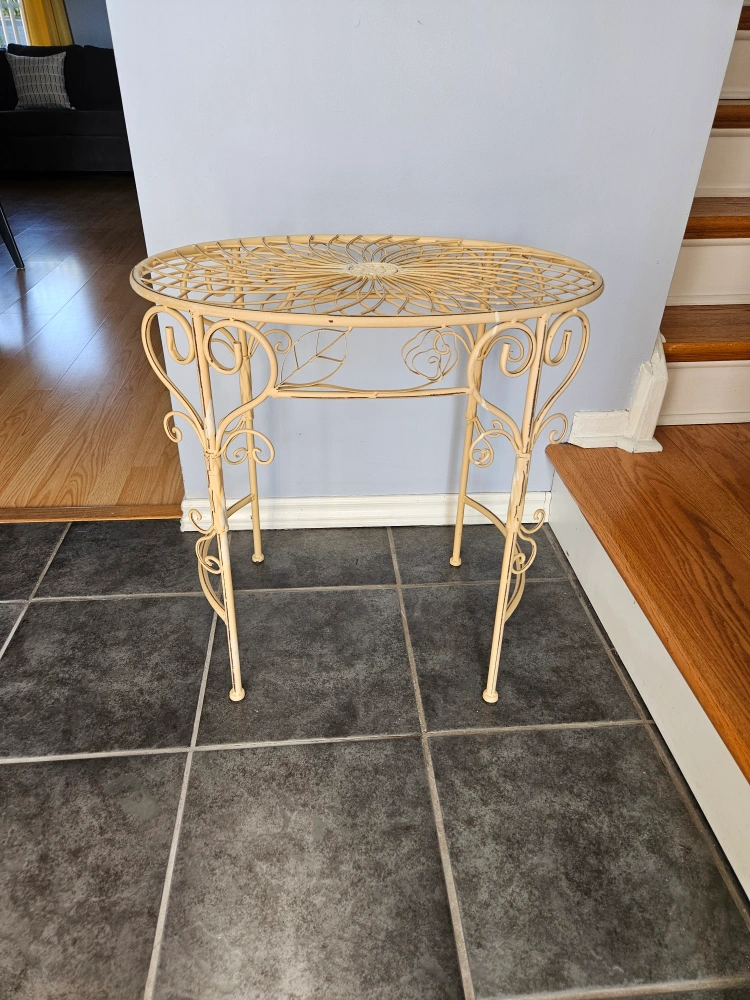 •Used - Like New •Distressed cream finish •24" H x 22" W x 16" D •Pick up Brampton- Kennedy & Vodden