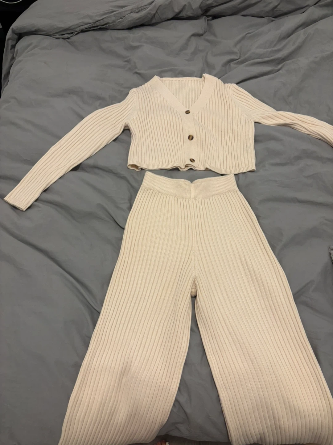 Cream Wide Legged Knit Set