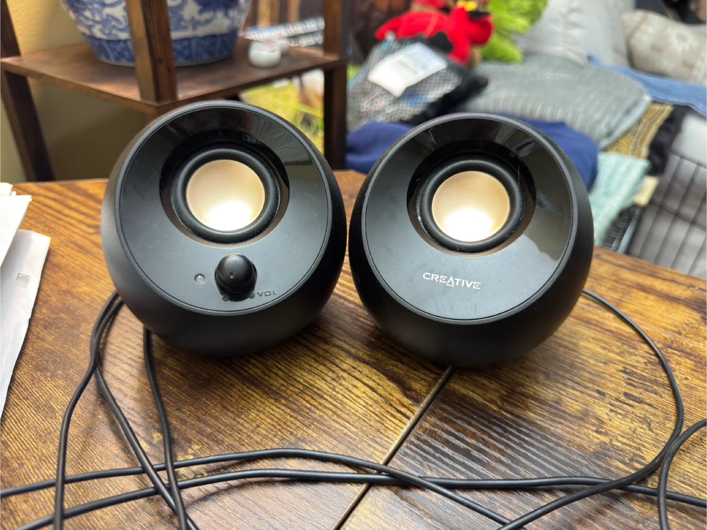 Selling a set of Creative Pebble V2 minimalist speakers! They're in great shape and ready to bring some sound to your space. Compact and stylish, they're perfect for a desk setup or small room
