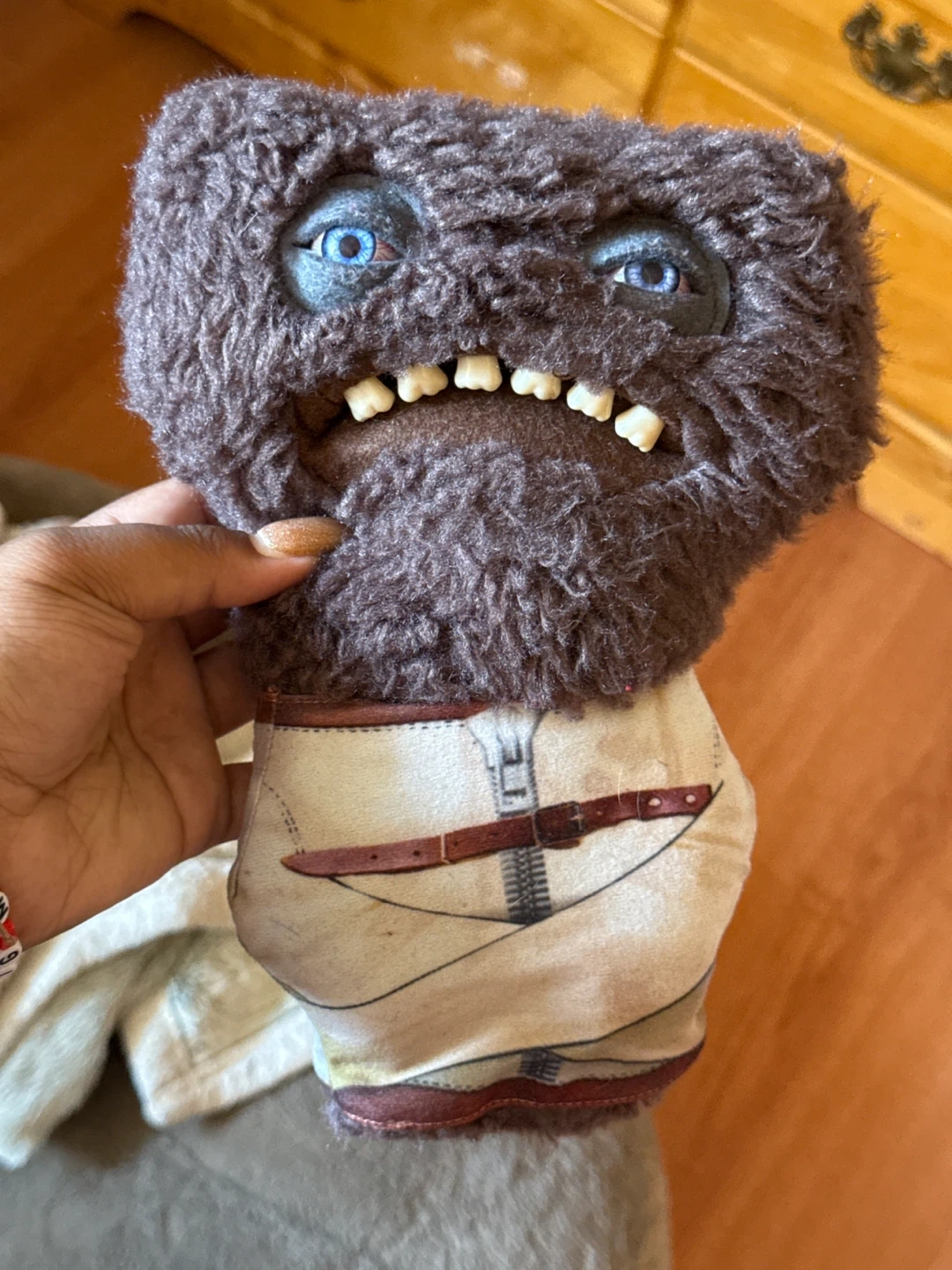 Selling a creepy plush doll with blue eyes and a straight jacket. It's definitely a unique piece! I would love the price I put. but I can be talked down.
