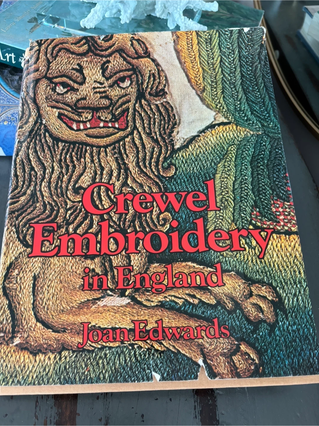 Selling a copy of "Crewel Embroidery in England" by Joan Edwards. It's a fascinating book for anyone interested in the art of crewel embroidery. The book is in good condition and ready for a new home