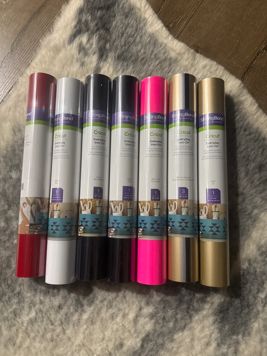 16Selling a set of Cricut Everyday Iron-On vinyl rolls. Perfect for a wide variety of materials and projects! Includes multiple colours. 7 vinyl rolls
