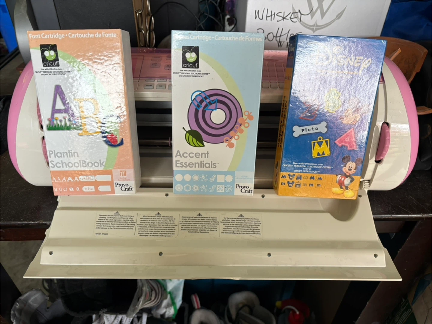 10Selling a bundle of Cricut cartridges! Includes the Plantin SchoolBook, Accent Essentials, and Pluto cartridges. Cricut machine included but is missing the keyboard pad and a plug. Selling as is