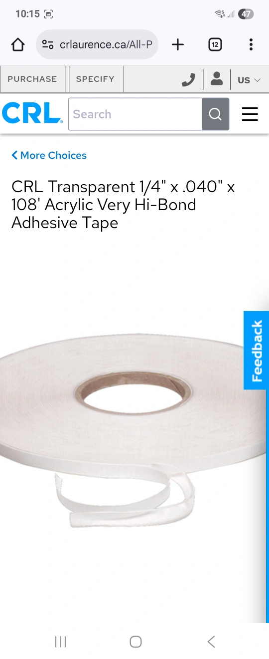 10Selling a roll of CRL transparent acrylic very hi-bond adhesive tape. It's 1/4" x .040" x 108'. Great for various applications! 3 rolls