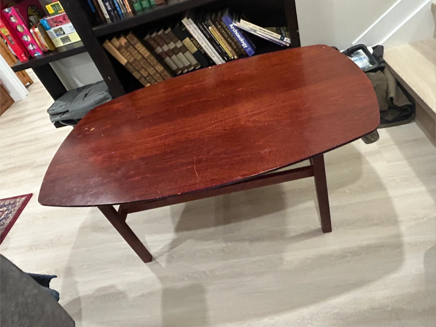 Buy & SellWooden coffee tableWooden coffee table$35A nice wooden coffee table with a rich, dark wood finish. It's a great size for most living rooms. This table's legs are sturdy and well-supported.ConditionGoodWHERE TO MEETCheck LocationView MapSELLERverifiedR MooniasMcConachie43040 reviews0 chats·0 favorites·12 viewsSEND CHAT TO SELLERHi R Moonias! I’m interested in your listing.Hi R Moonias! I’m interested in your listing.Get the Karrot app to chatSign In to chat