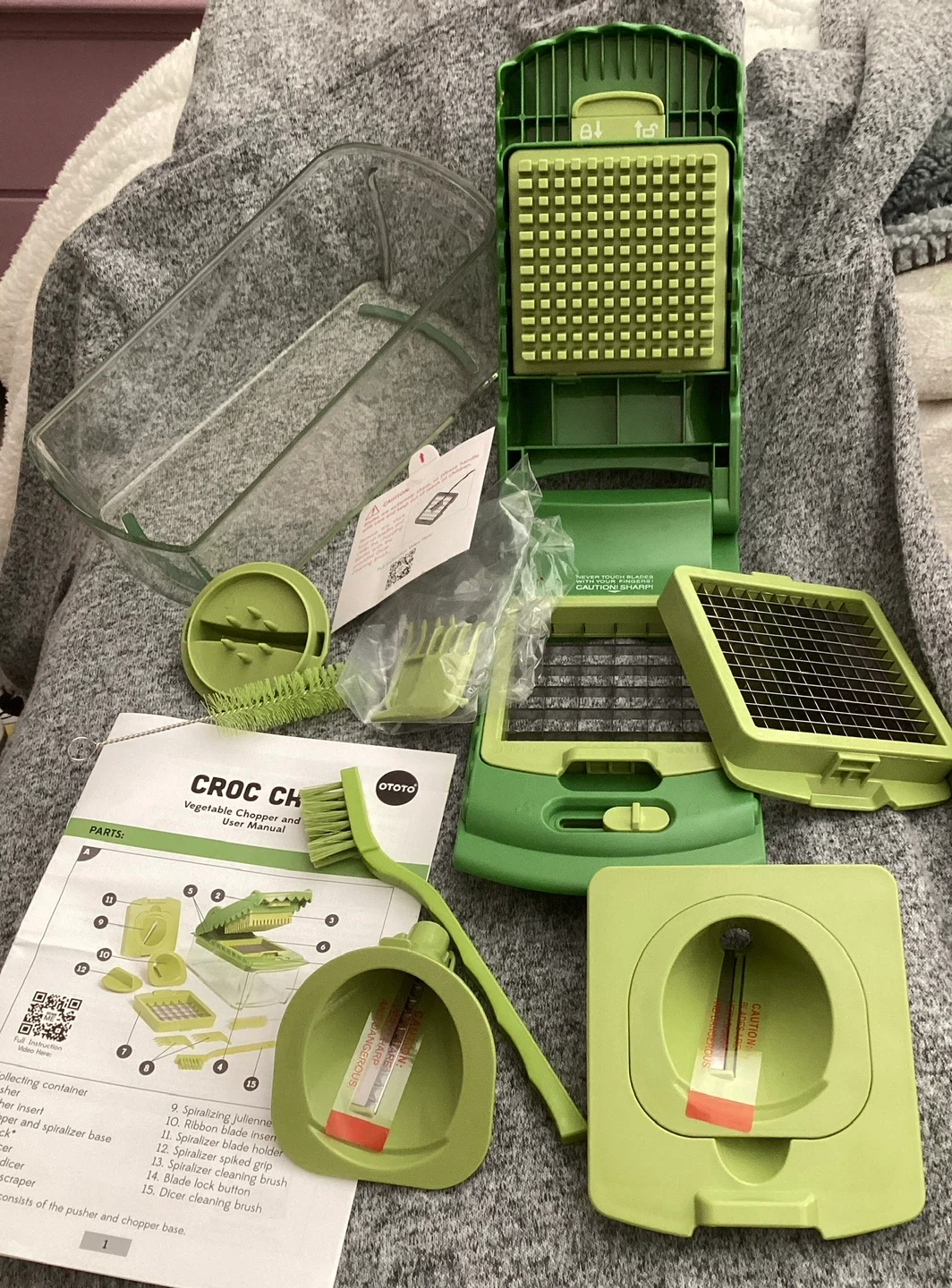 92I'm selling a Croc Chop Fullstar vegetable chopper. It's a manual food chopper, great for potatoes and other veggies! It's a 4-in-1 kitchen tool that can chop, dice, and slice. It's green and made of plastic. Originally bought for $45.99, it's in new condition and ready for a new home porch pick up in Binbrook
