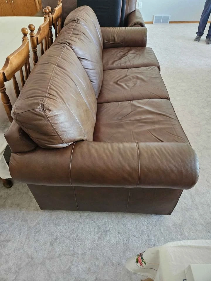 Beautiful brown genuine leather 3-seater sofa purchased from Costco. This couch is extremely comfortable with deep seating and supportive cushions, perfect for everyday use or relaxing nights in.