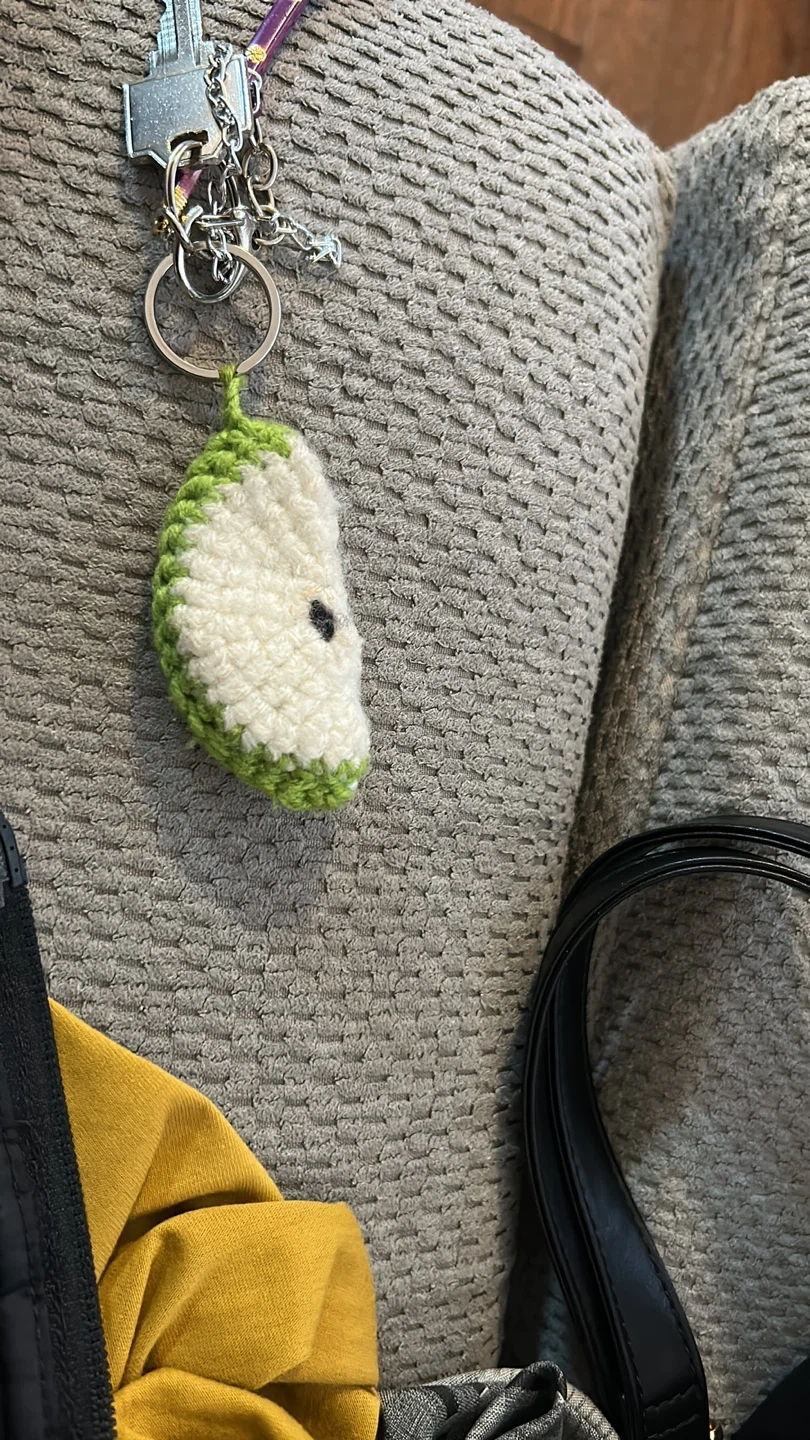 48Super cute handmade crochet apple & strawberry keychain! Would look great on your keys or backpack. It's in great condition and ready for a new home! Lovely different coloured flowers and custom made items on request can be done