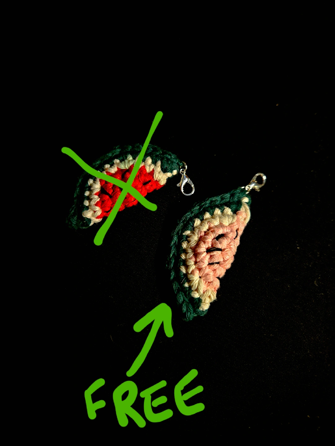 I have a cute 1.5 inch watermelon charm available! It's handmade and has a little clasp so you can attach it to your bag, keys or bracelet. The pink one is free!