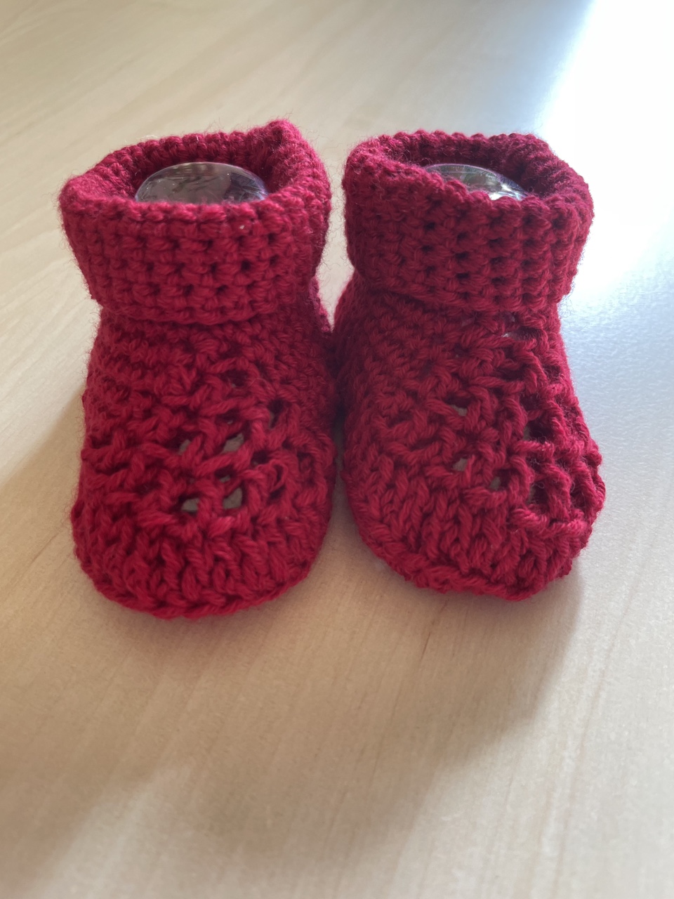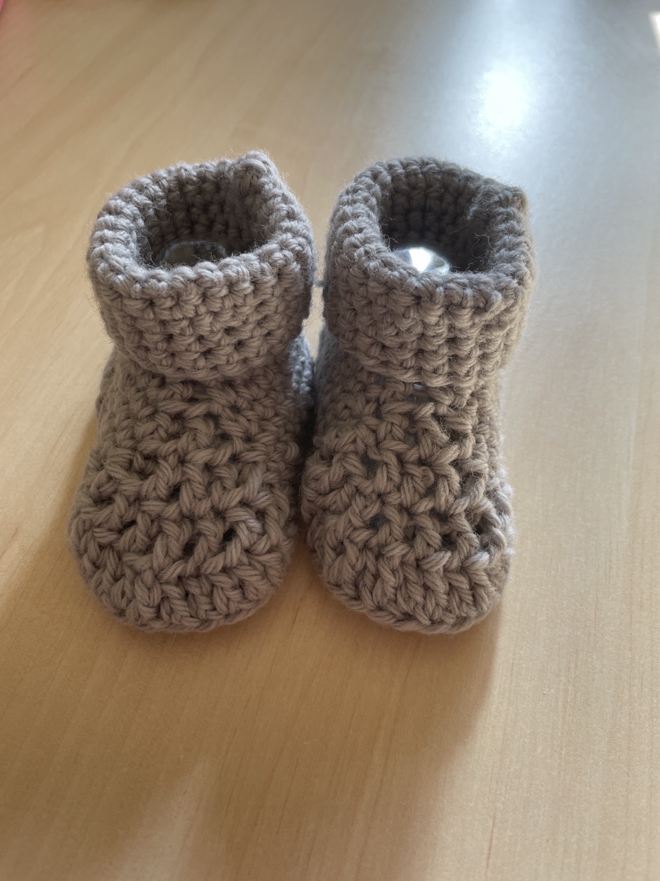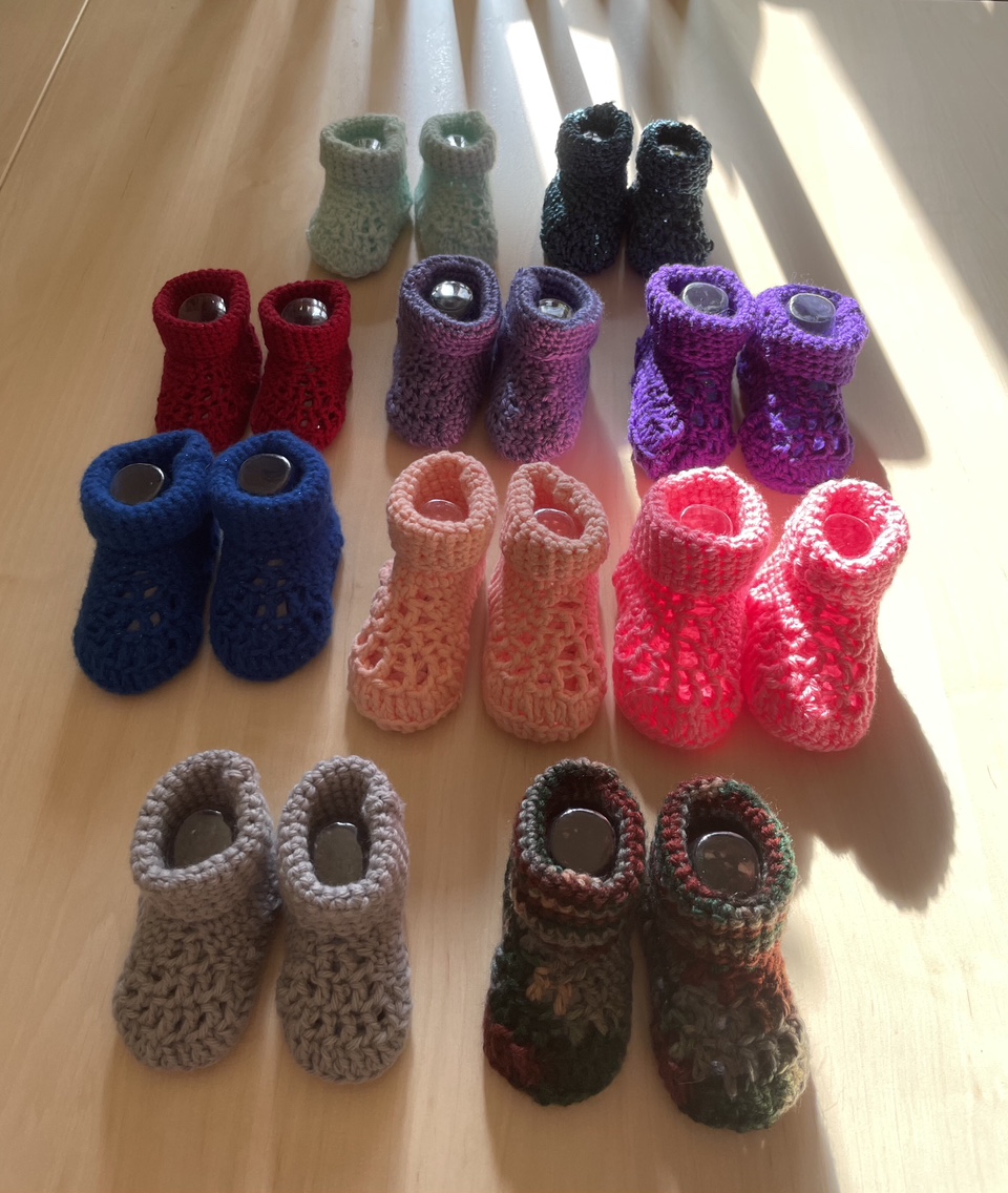 Crocheted baby booties in a large variety of colours. Mostly fit newborn -12 months. Custom orders are $5 extra