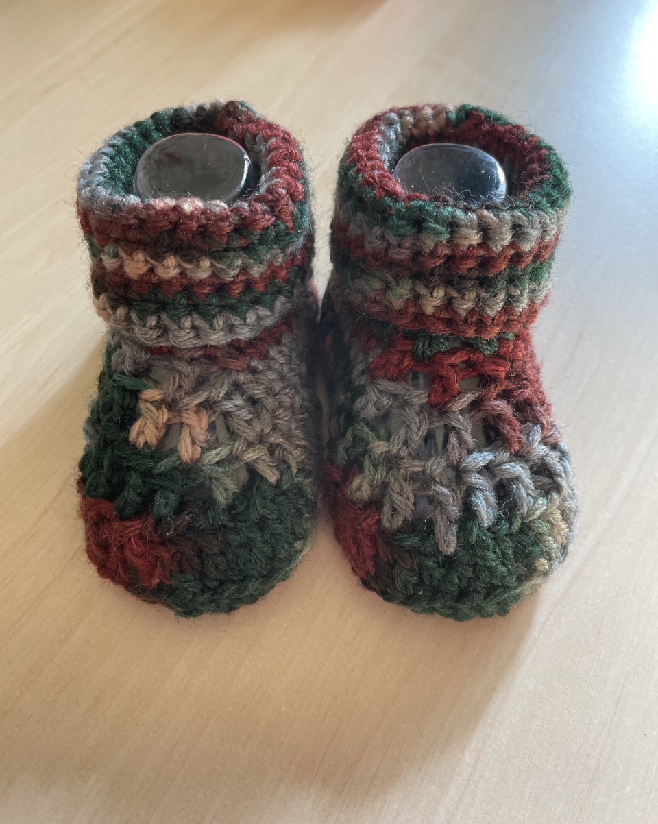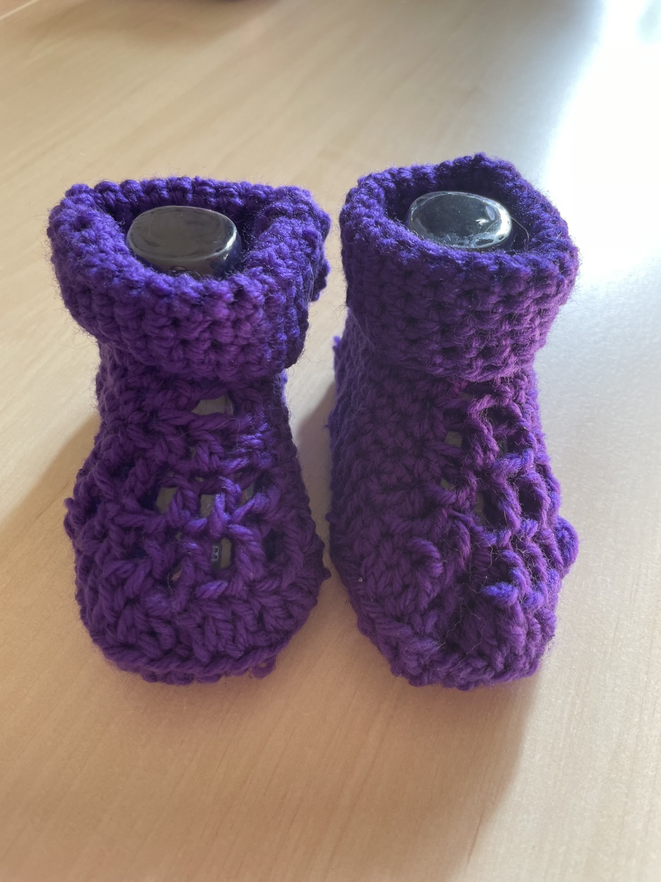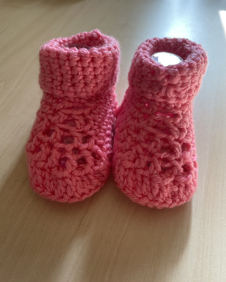 Crocheted baby booties in a large variety of colours. Mostly fit newborn -12 months. Custom orders are $5 extra