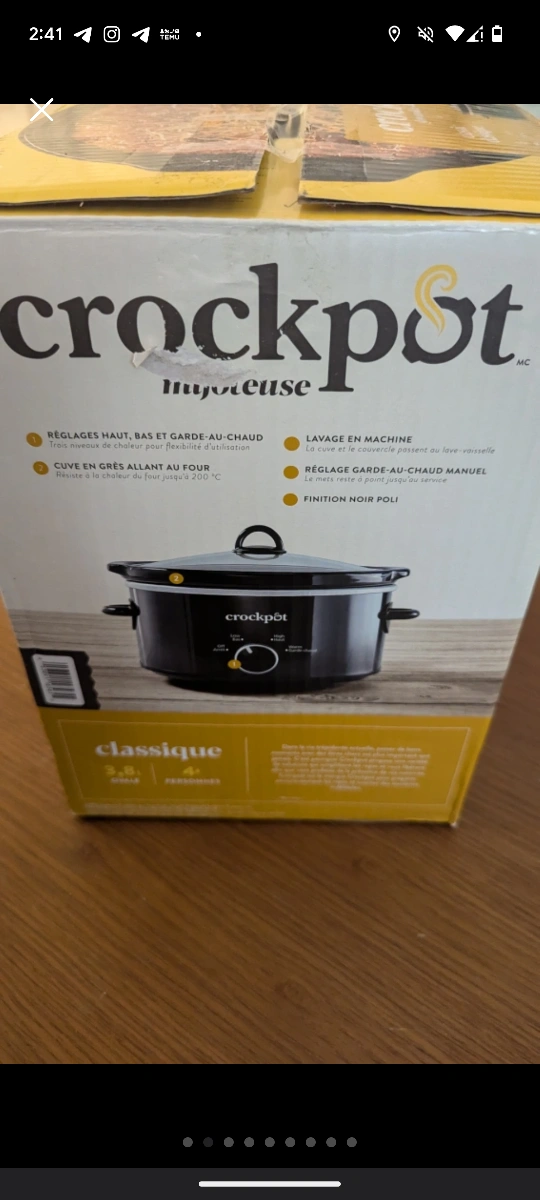 New Crock-Pot slow cooker. 3.8 litre capacity. Black finish. Oven-safe stoneware pot. Machine washable.
