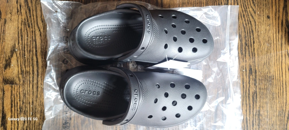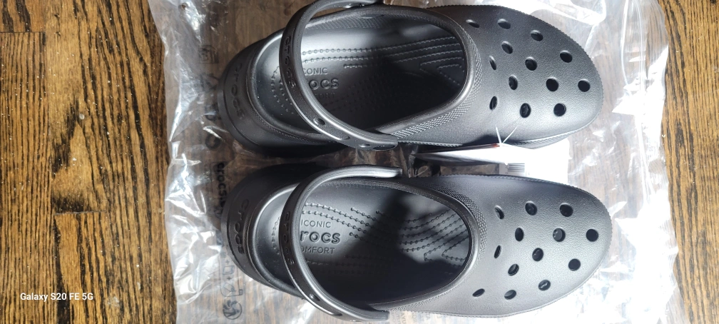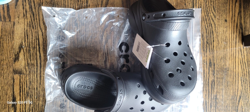 26brand new Crocs (clog) for women. still on its original packaging and tag is still attached. size 9(woman) an inch big for me selling for the actual price or cost when I bought it.