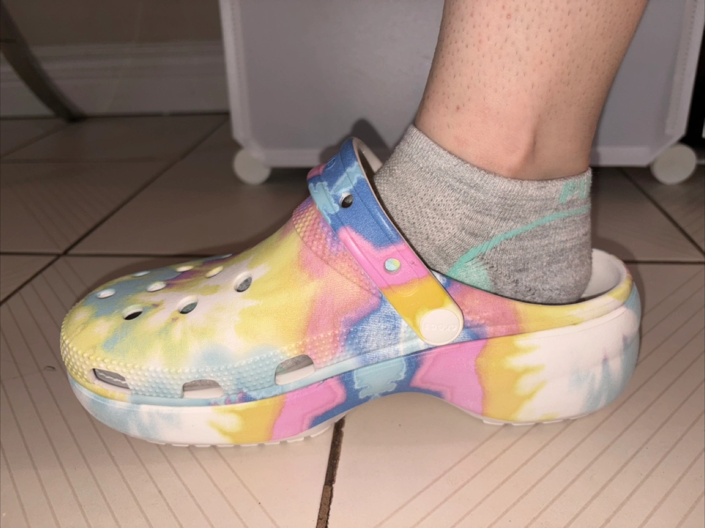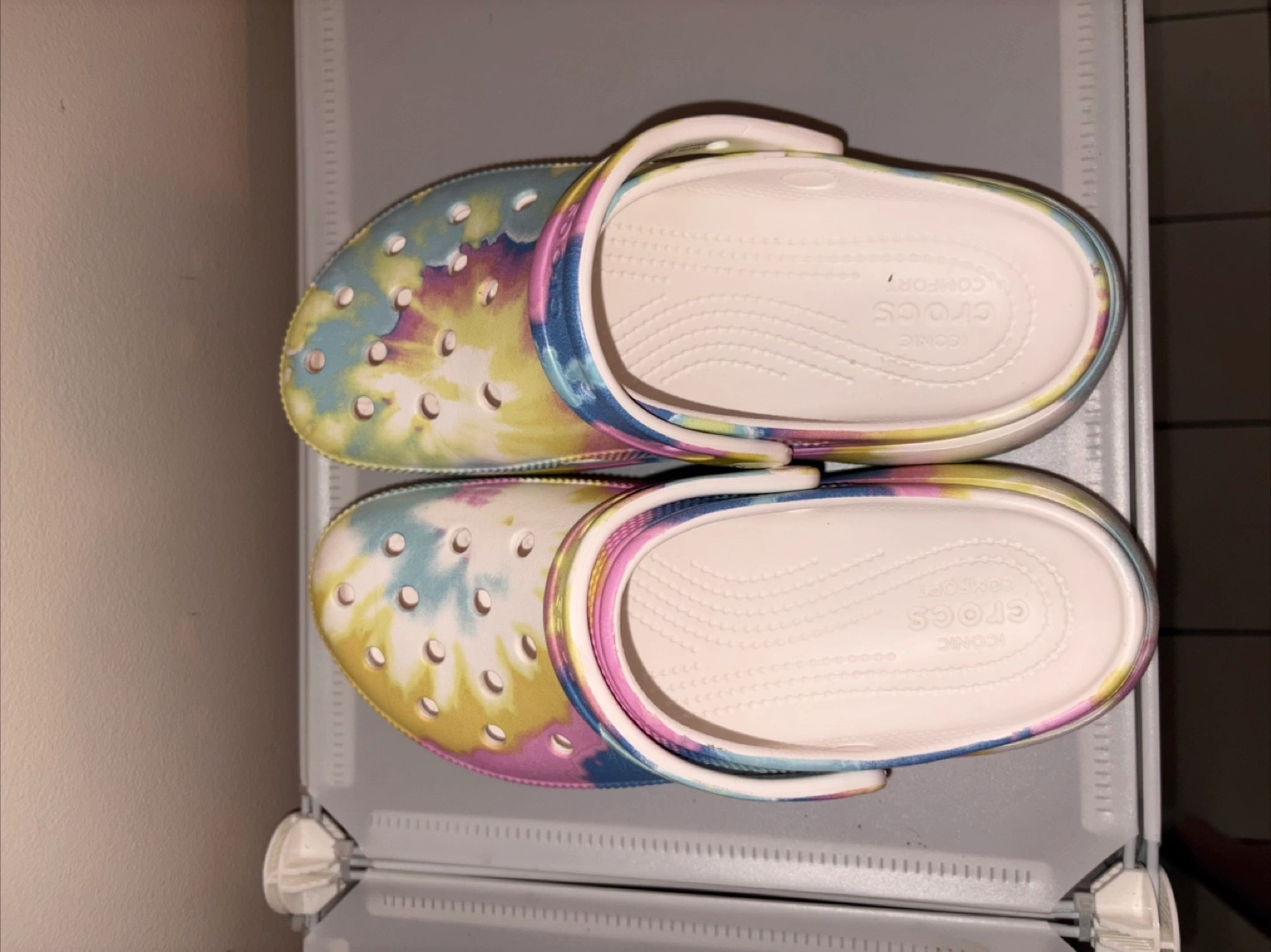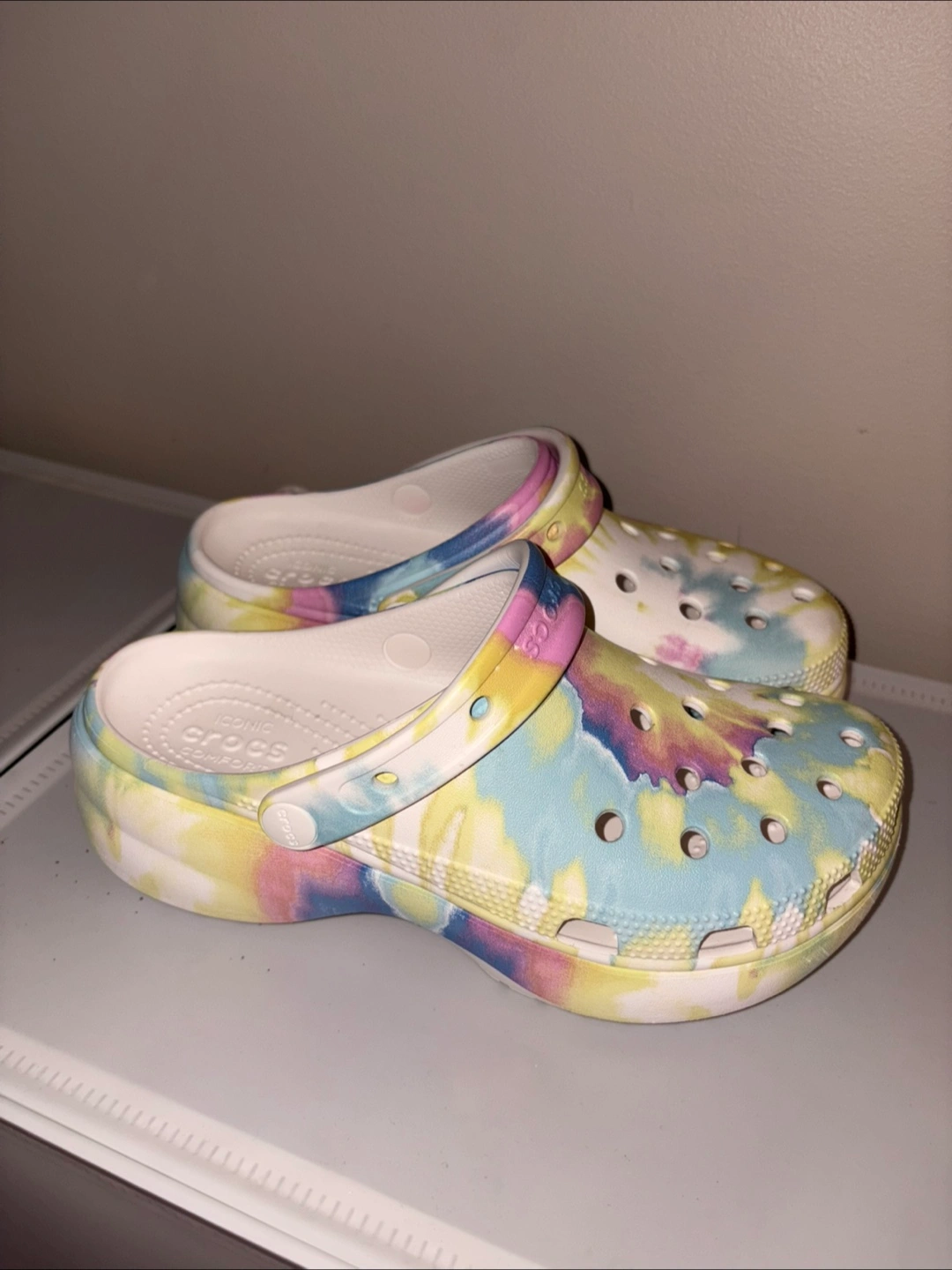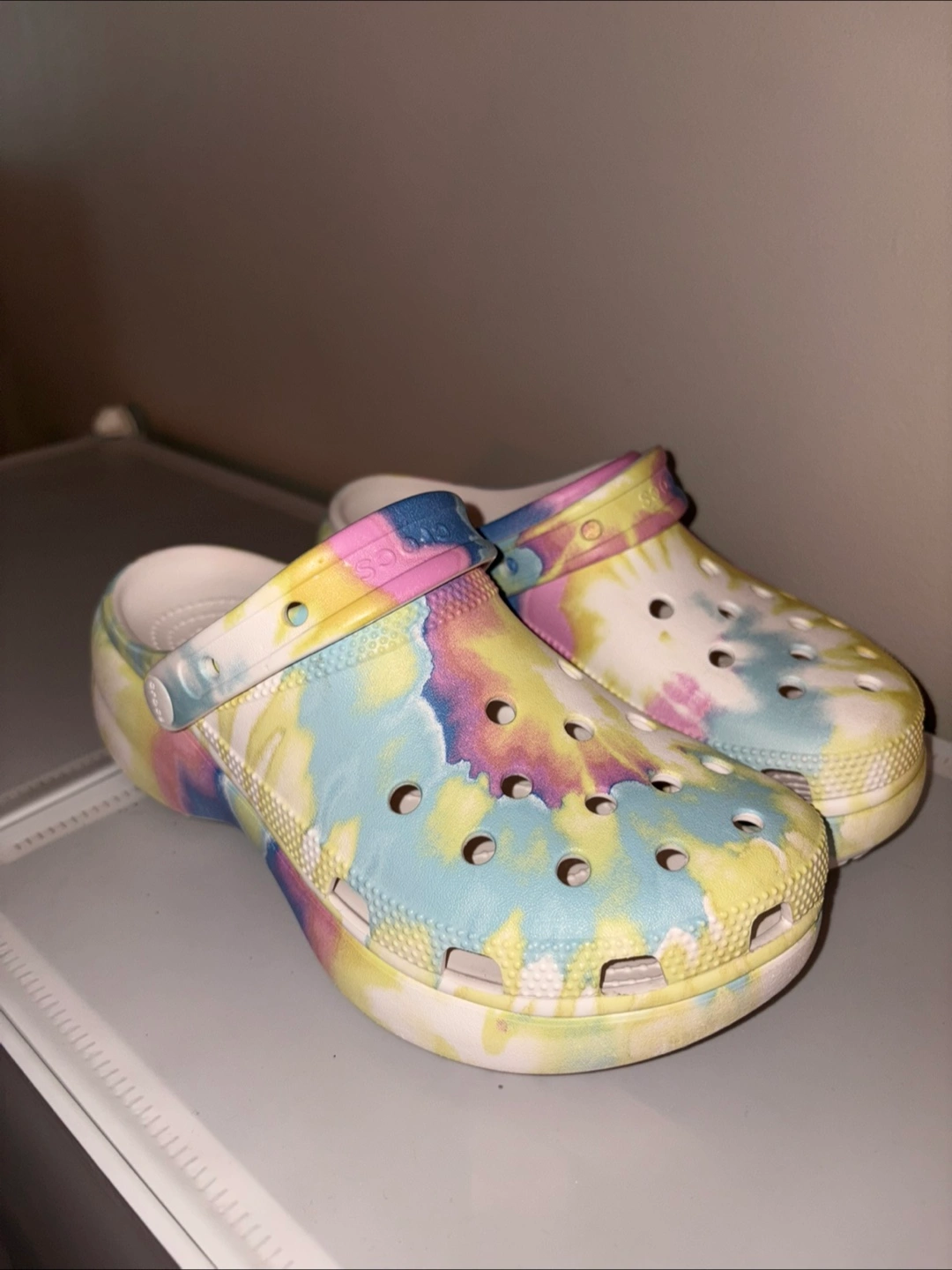 This is the Multicolour Platform Crocs🌈 Unisex! Size: 8 (womens) Very comfortable!
