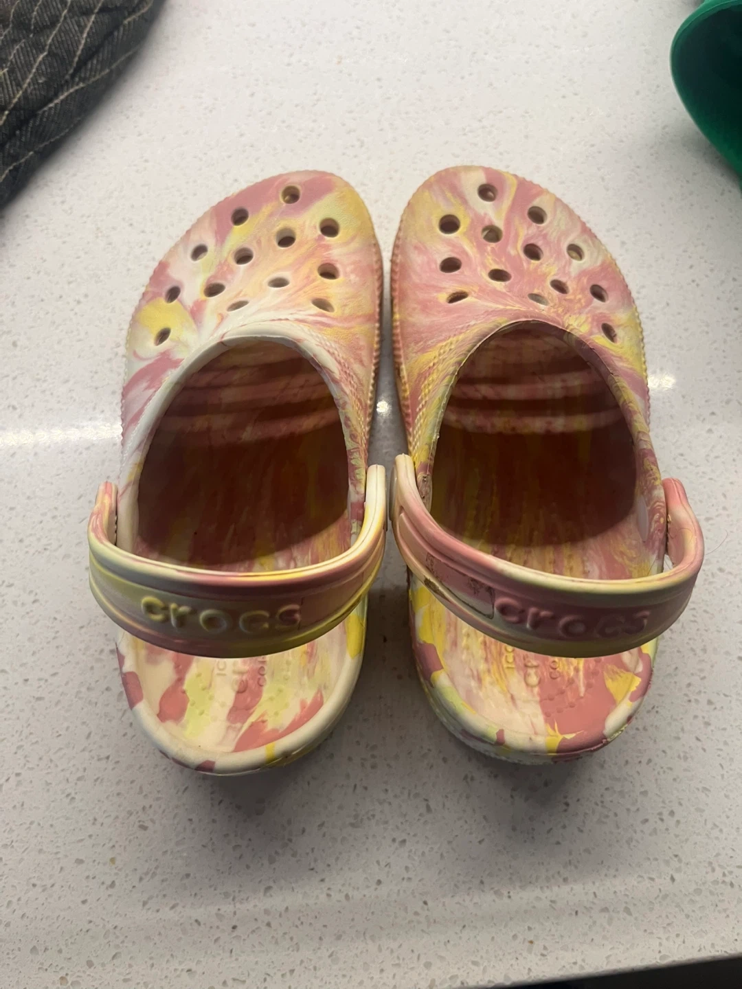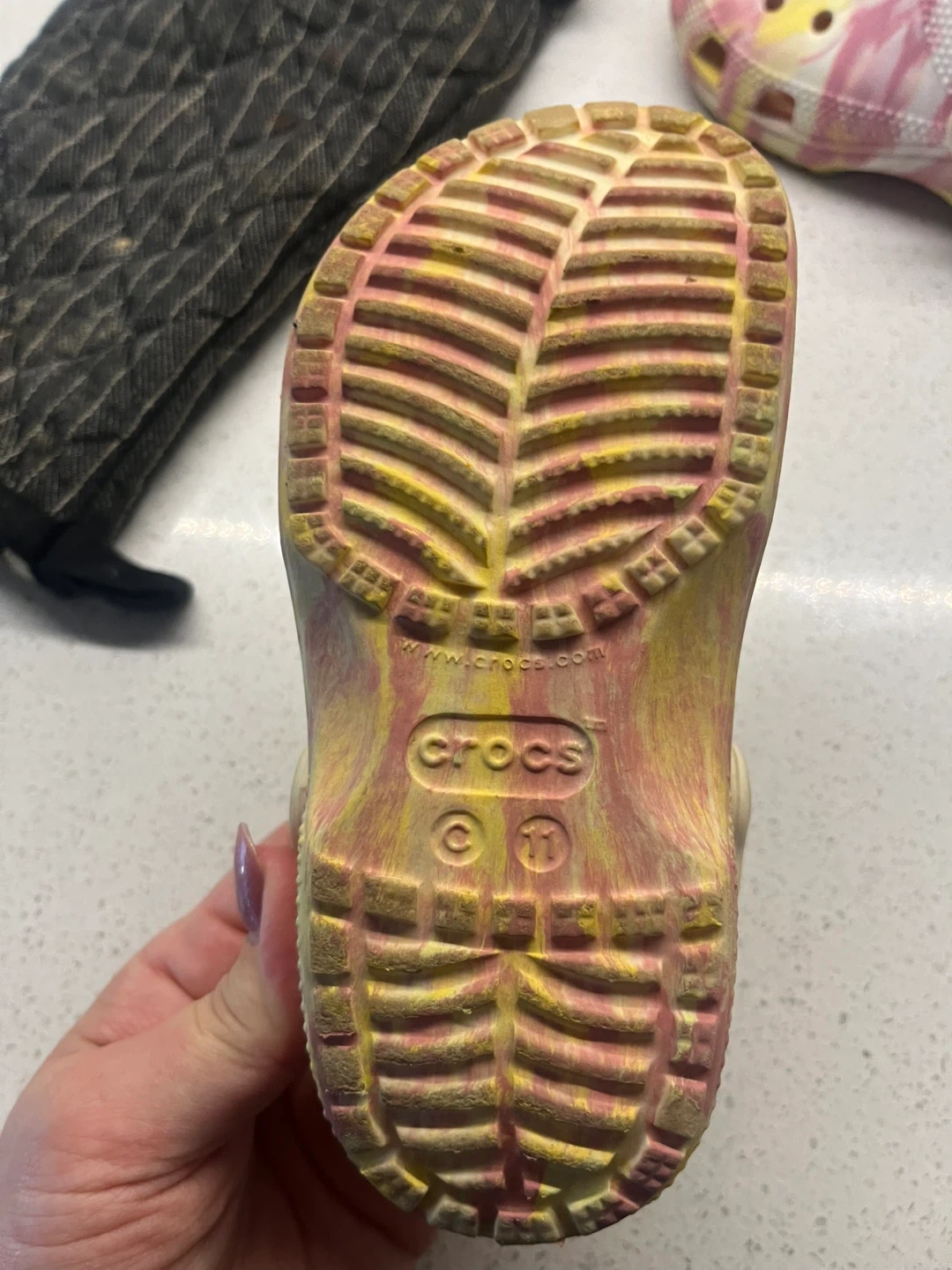 These Crocs Kids' Classic Marbled Clogs are in great shape and ready for a new home! They're size C 11perfect for little feet that are always on the go. The marbled design is super fun and unique, adding a pop of colour to any outfit
