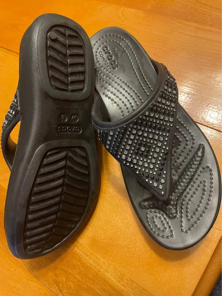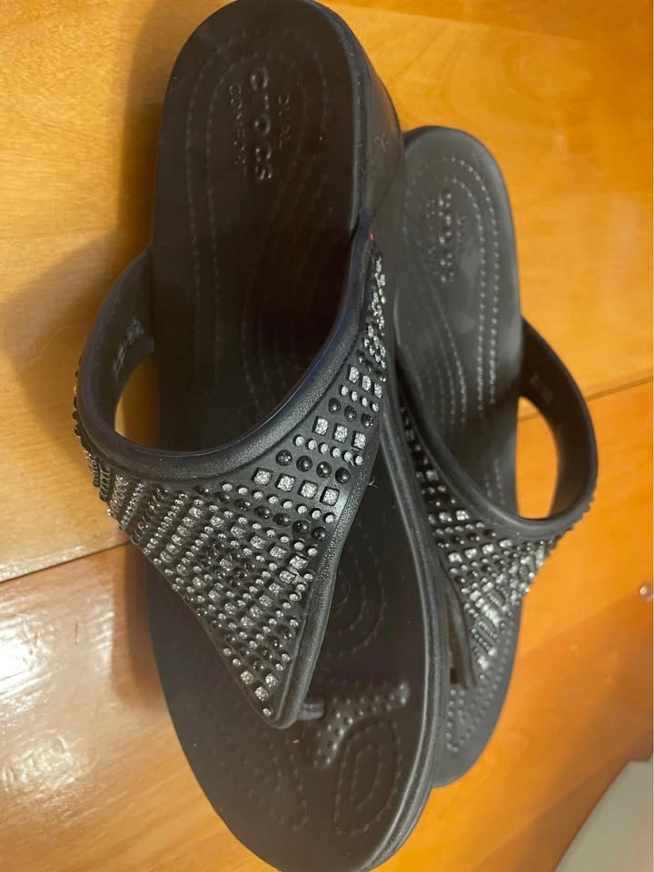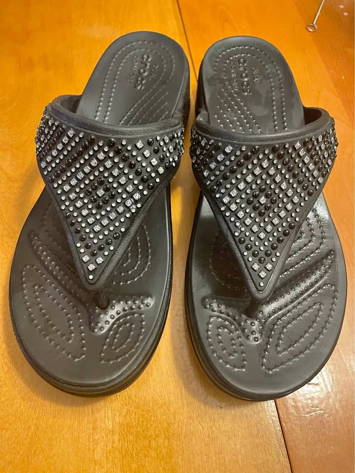 Wedge Thong Sandals by Crocs Black with crystal embellishments Women’s Size 8 Like new condition