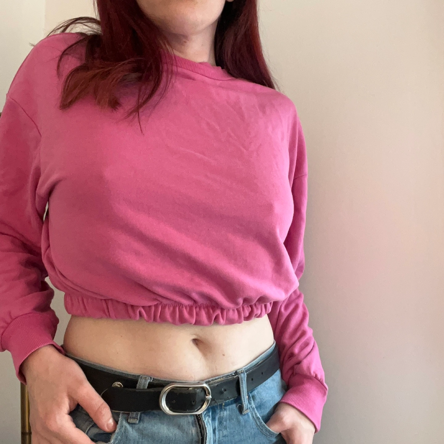 Stylish and comfortable cropped sweat shirt in good condition. It’s from 2022. Model waist is 30”.