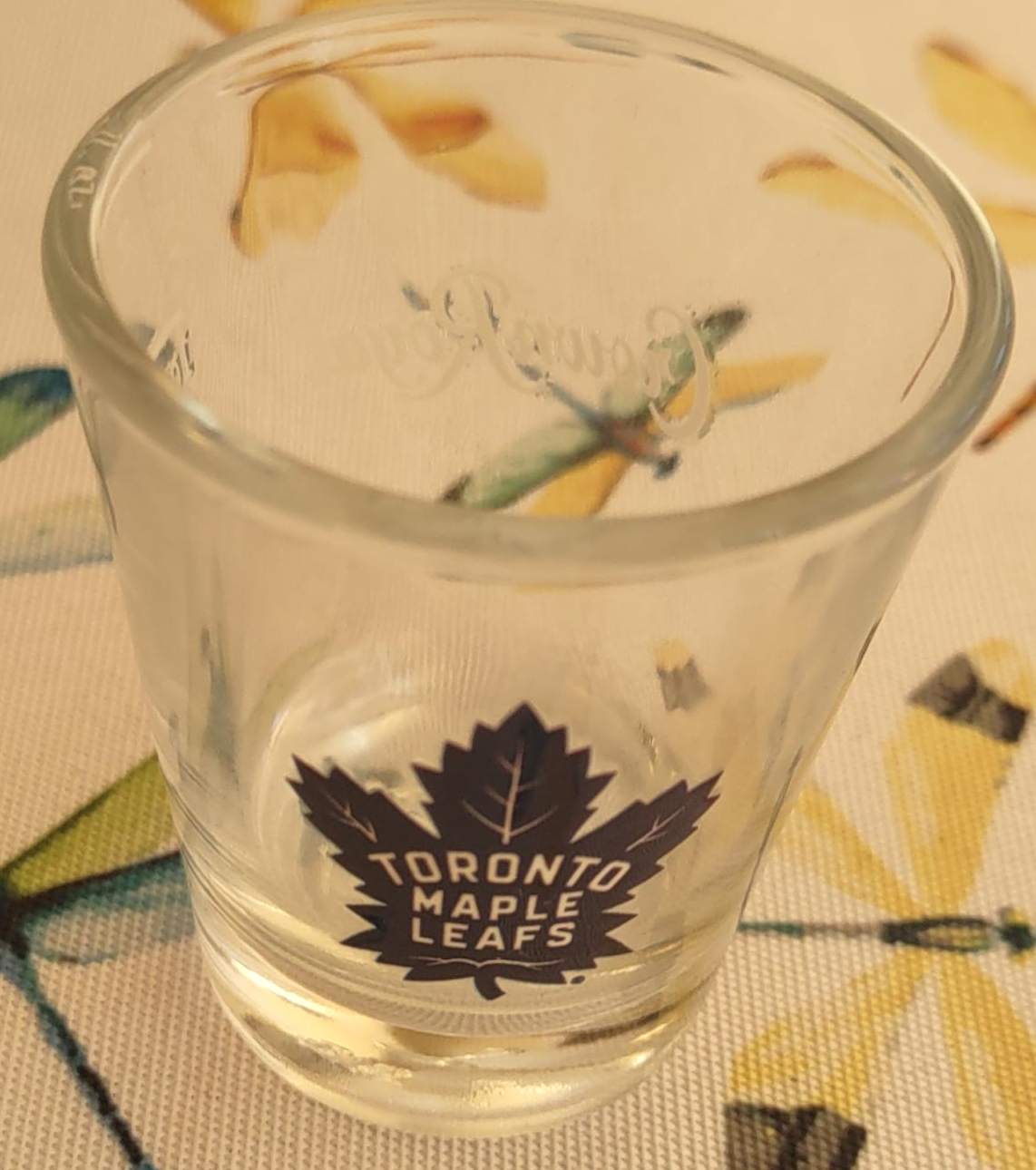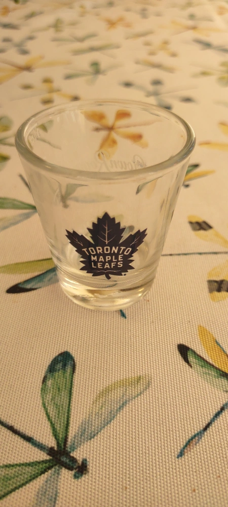 48Selling a Crown Royal shot glass featuring the Toronto Maple Leafs logo. It's in great condition and ready to show off your team spirit!