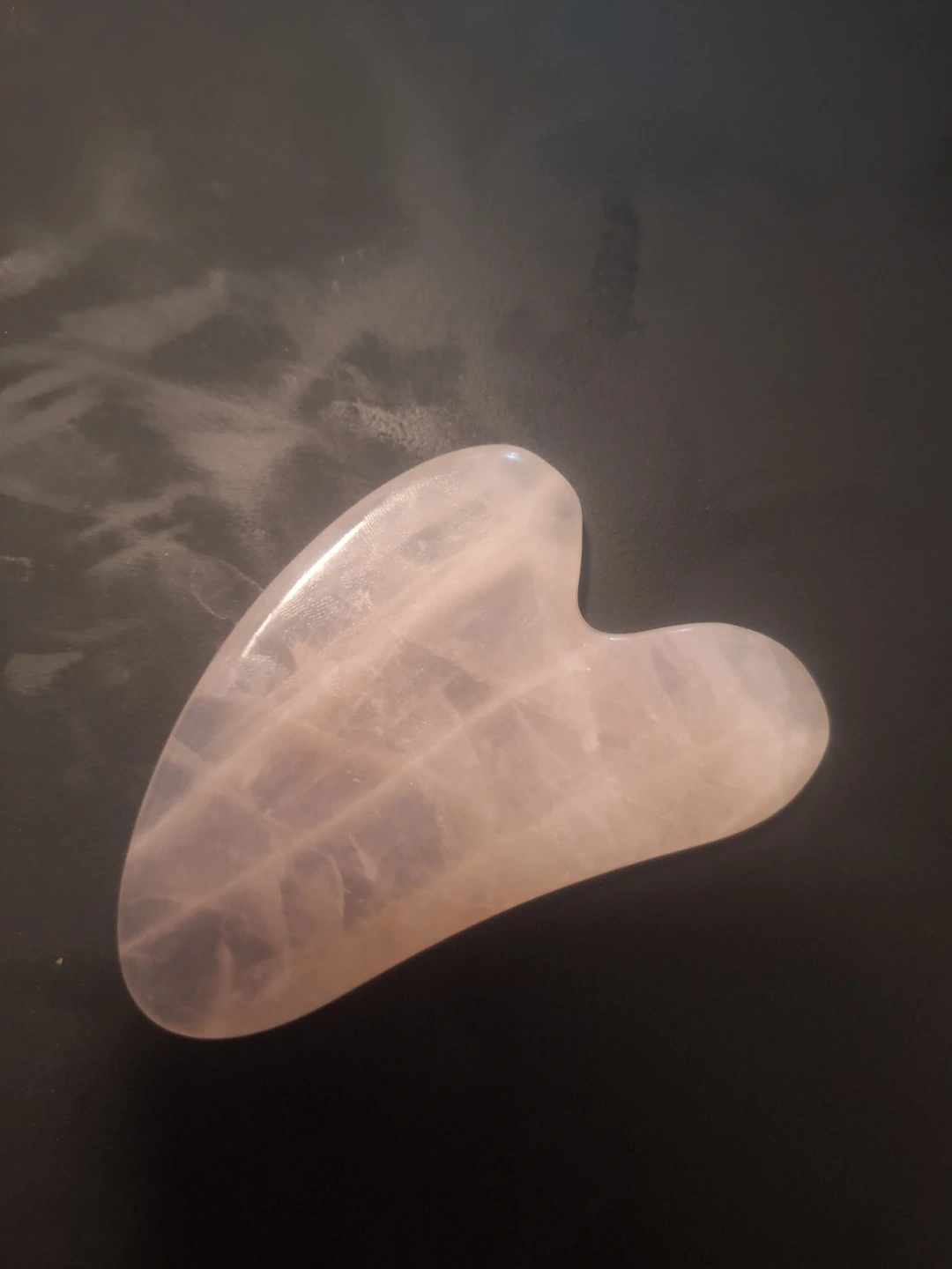 This heart-shaped gua sha tool is made from genuine rose quartz. It has never been used. I got it as a gift. It's smooth and polished, perfect for facial massage. It aids in skin care routines.