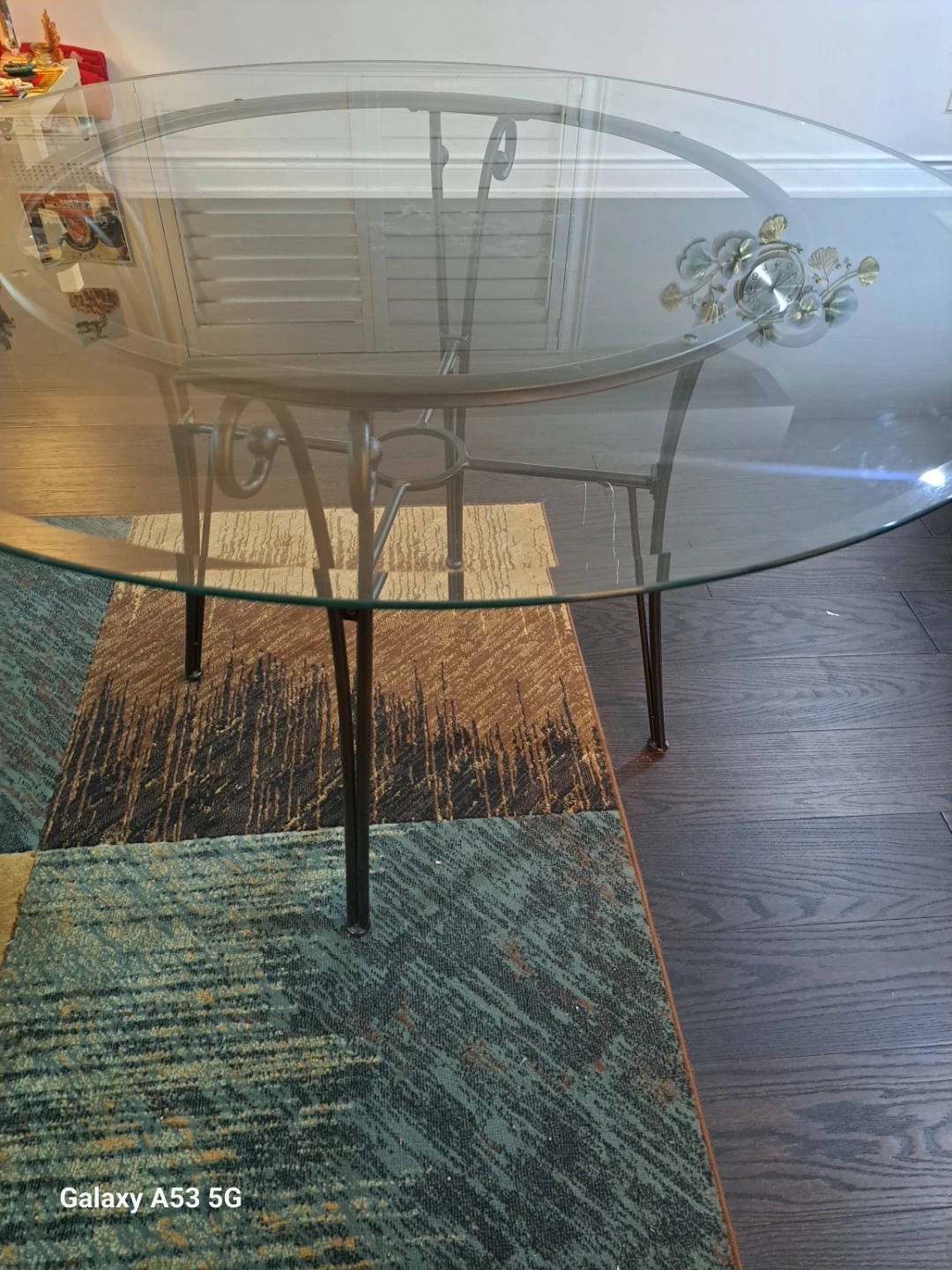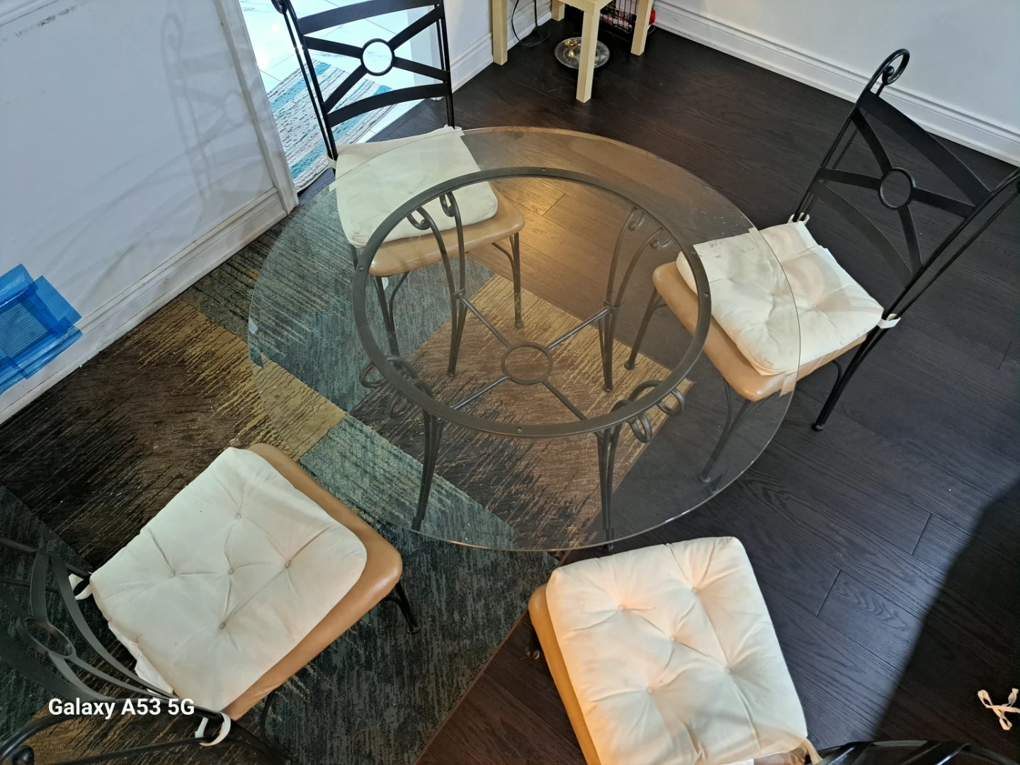 Round Glass Dining Table with 4 metal Chairs