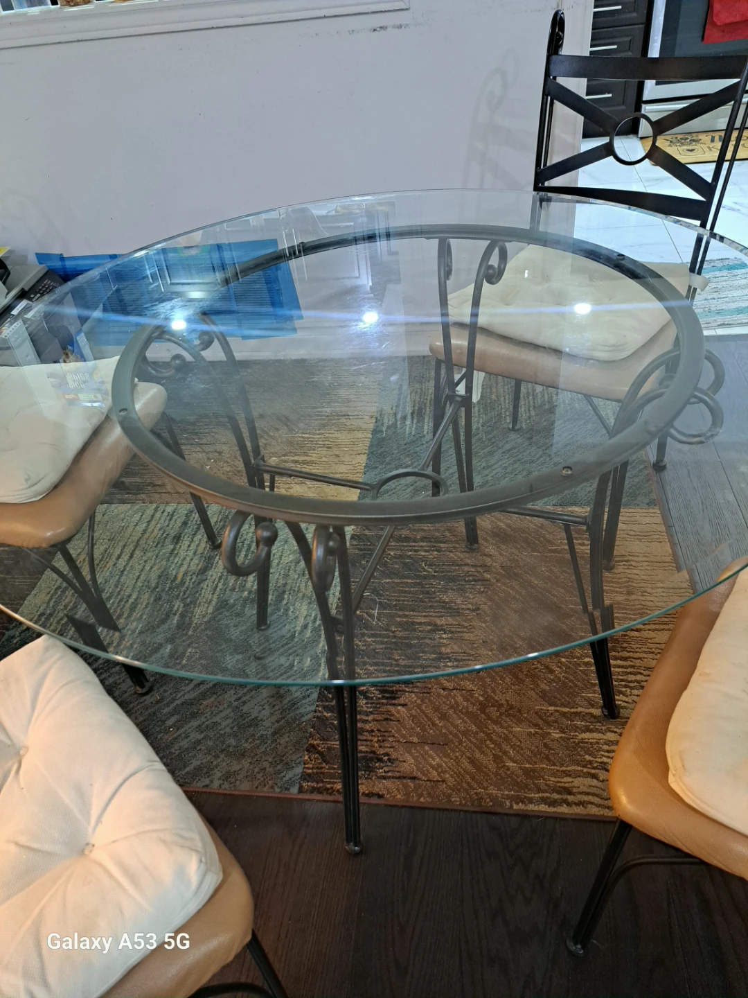 Round Glass Dining Table with 4 metal Chairs
