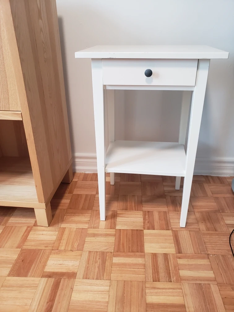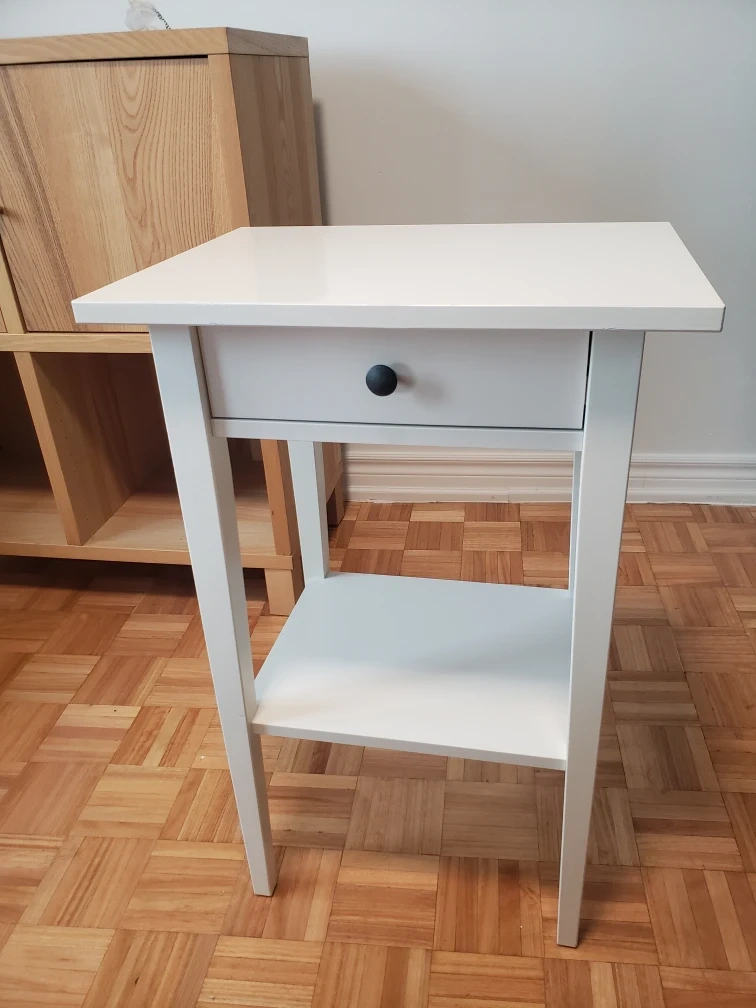 Selling a white IKEA Hemnes nightstand. It's in great condition and ready for a new home. Perfect for adding a touch of simple style to your bedroom! IKEA is currently selling them for 79.99$ before tax. Cash only payment. Trying to sell this item to pay back for Father's funeral expenses. Please click on my profile for more furniture items. Thank you for sharing interest and sharing this item to your friends and family!