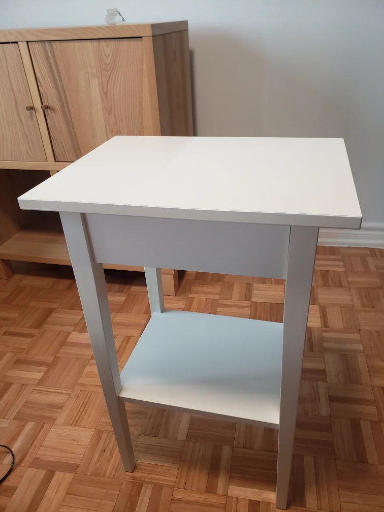 Selling a white IKEA Hemnes nightstand. It's in great condition and ready for a new home. Perfect for adding a touch of simple style to your bedroom! IKEA is currently selling them for 79.99$ before tax. Cash only payment. Trying to sell this item to pay back for Father's funeral expenses. Please click on my profile for more furniture items. Thank you for sharing interest and sharing this item to your friends and family!