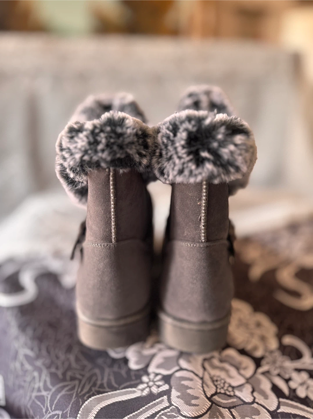 Grey Faux Suede Winter Boots with Fur Trim