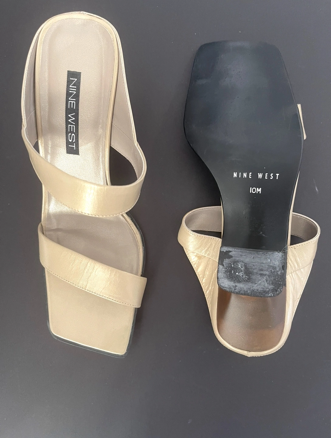 Selling a pair of Nine West heels in a lovely Gold colour. They are a size 10M and in good condition, perfect for dressing up or down. Check out the photos for a closer look!