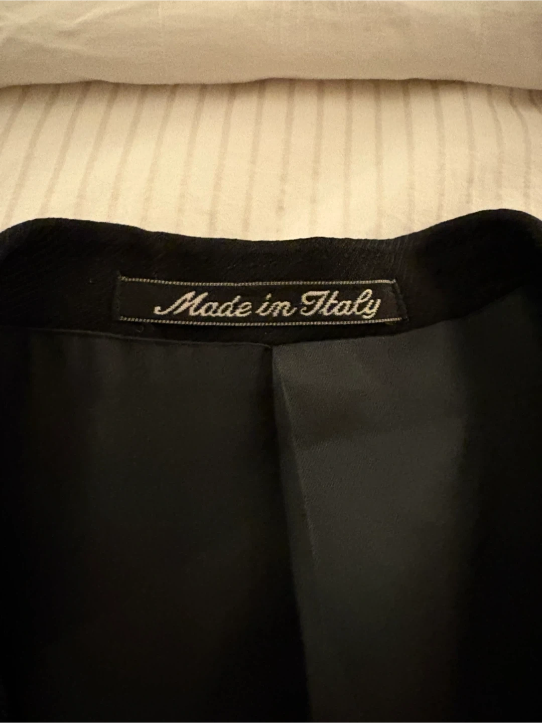 Classic black double-breasted blazer from Giorgio Armani's Le Collezioni line. Expertly crafted in Italy, this timeless piece features a sleek design and premium material. It's perfect for formal occasions or adding a touch of sophistication to any outfit!