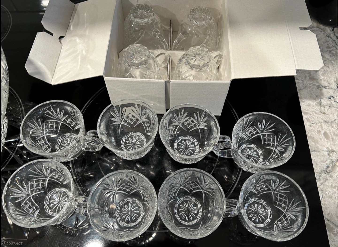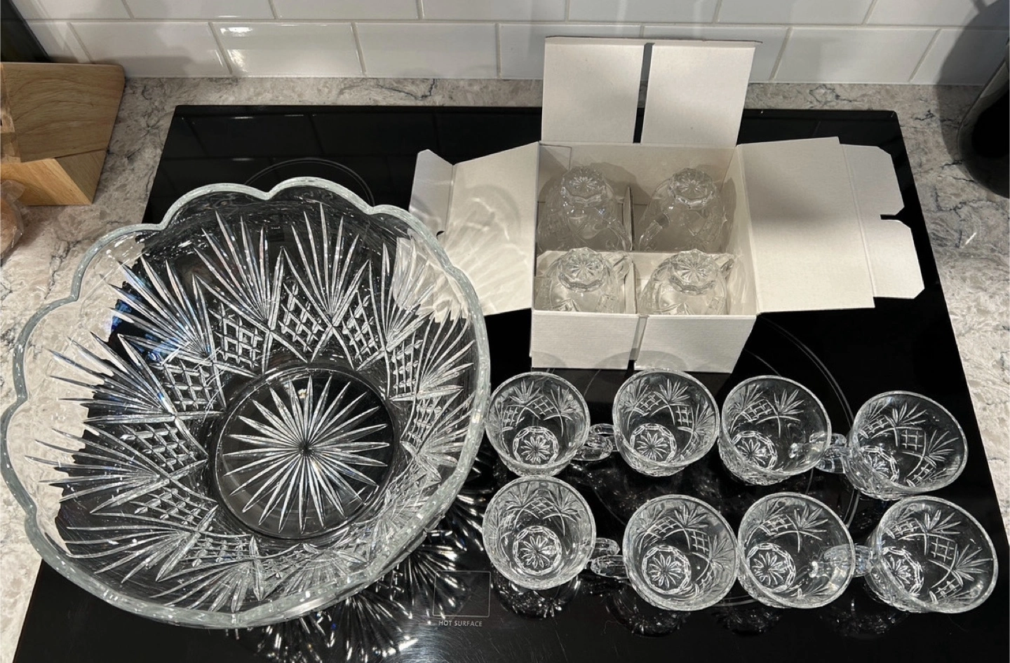 Bohemia Crystal made in Czech Republic Punch Bowl and 12 Cups