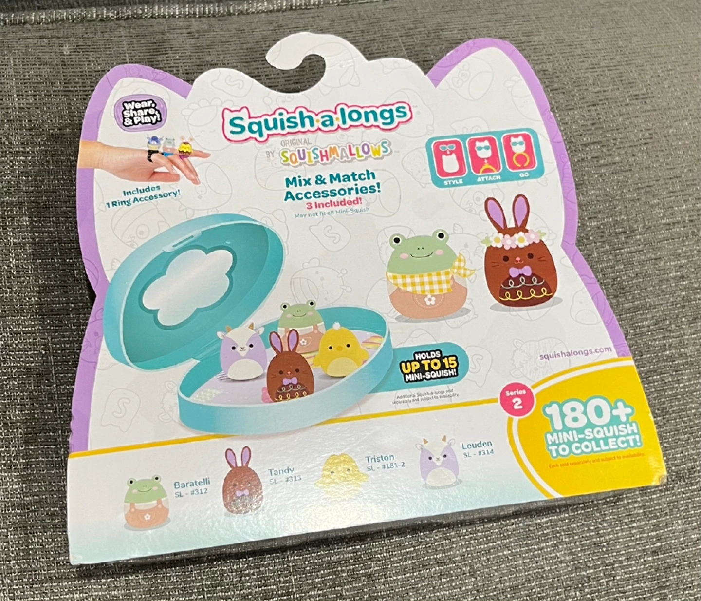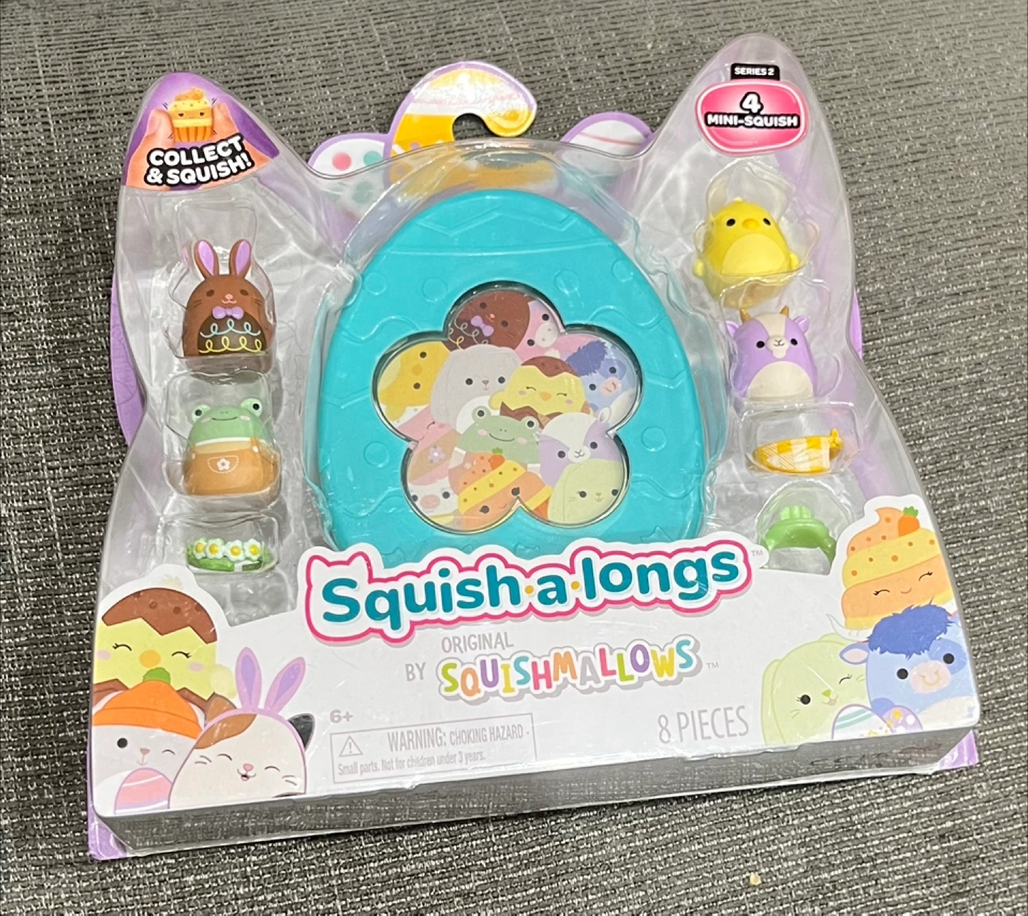 New Squishmallows Squish-a-longs Series 2 Easter egg. Includes 8 mini-squish and 1 ring accessory. Collect and squish!