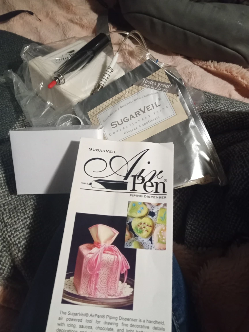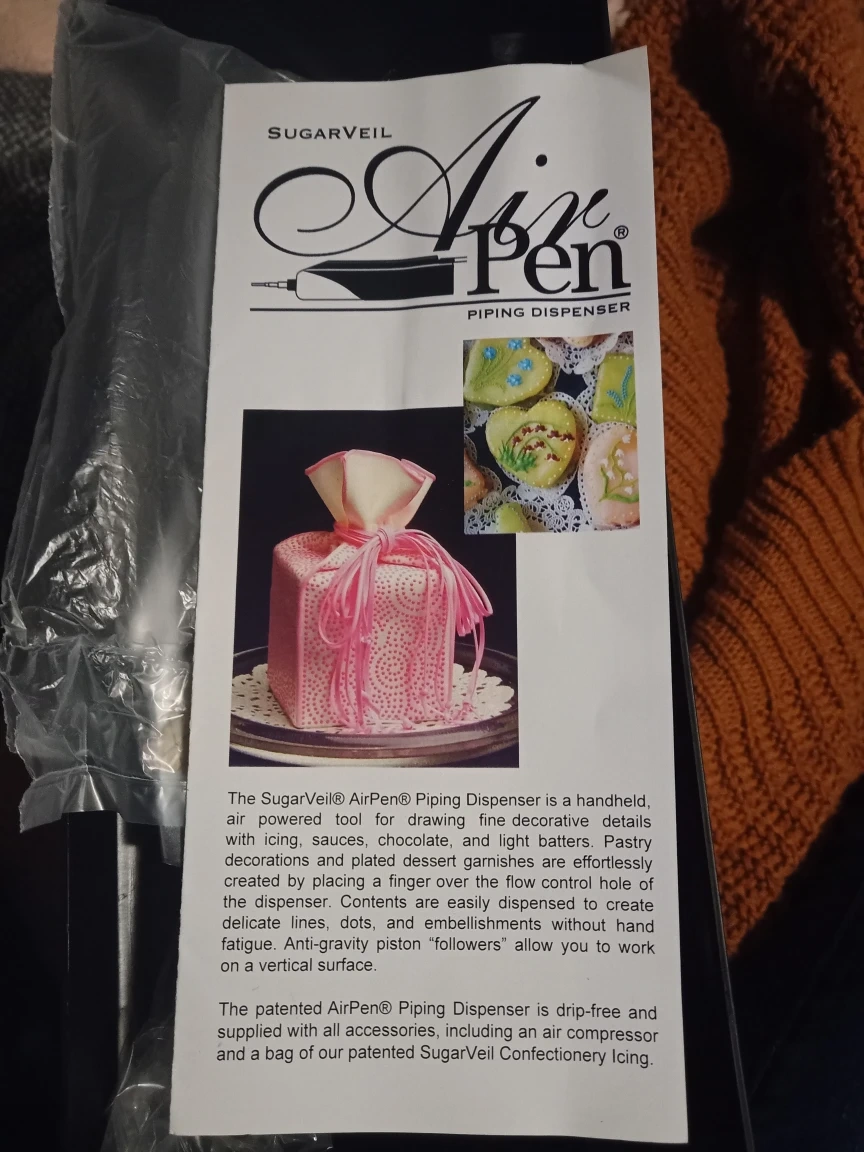 Selling a brand new SugarVeil AirPen Piping Dispenser! This is a handheld, air-powered tool for drawing fine decorative details with icing, sauces, chocolate, and more. It's still in its original packaging and includes all components.