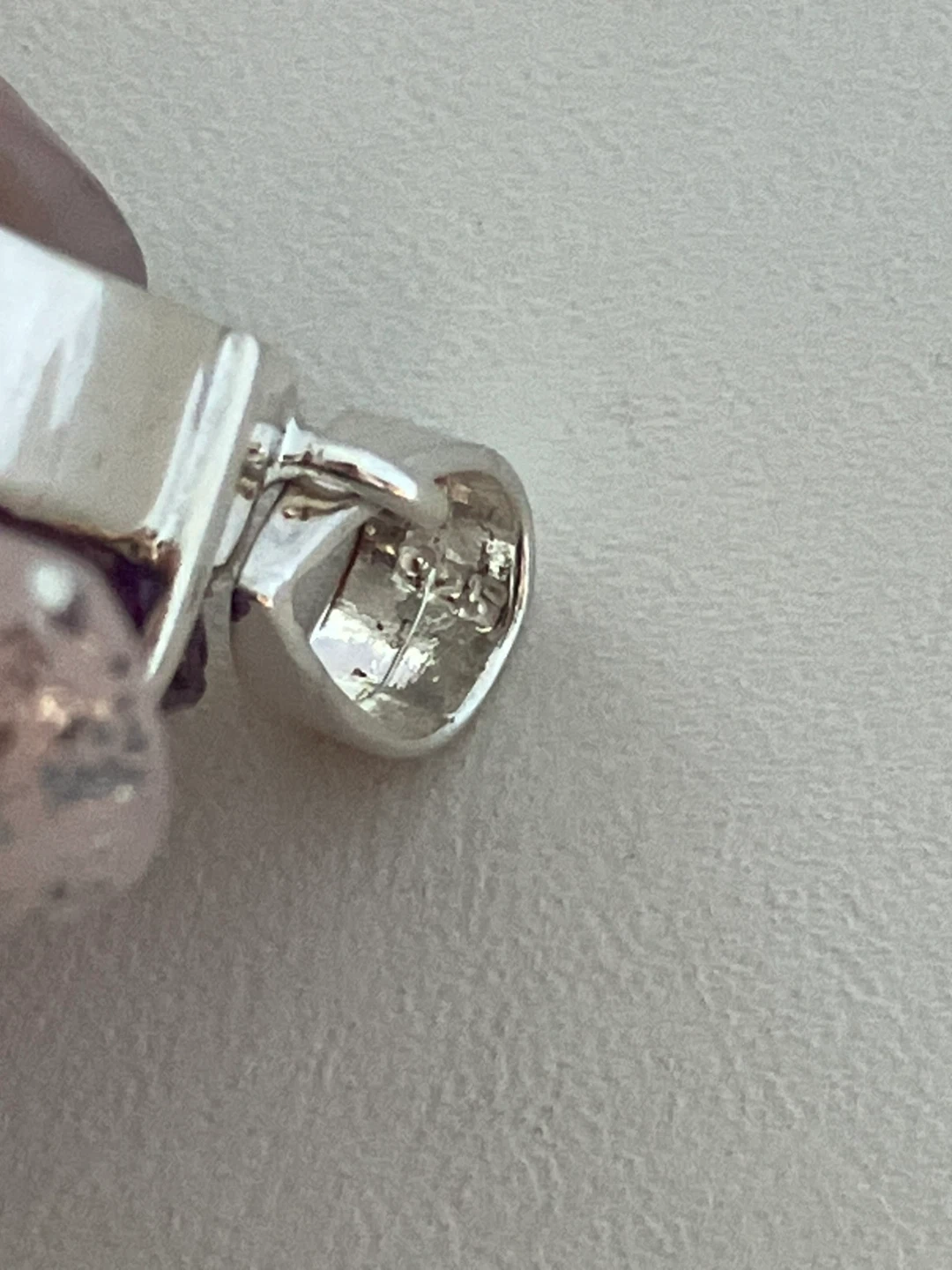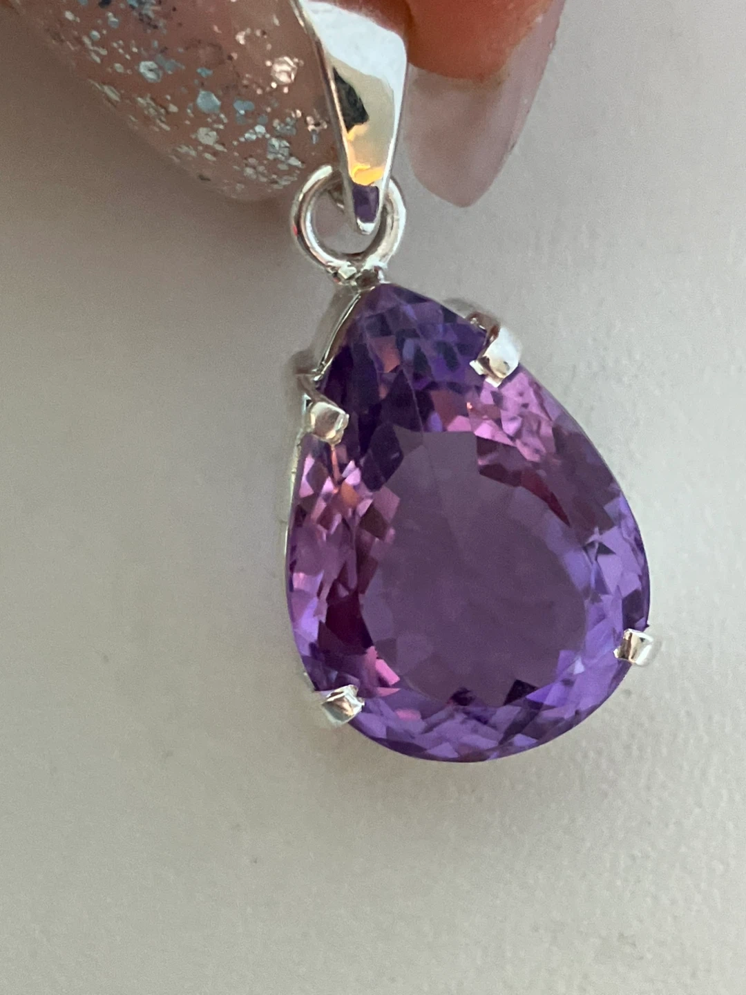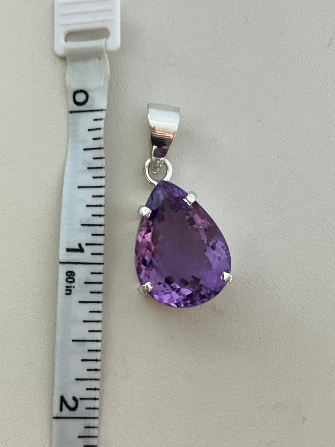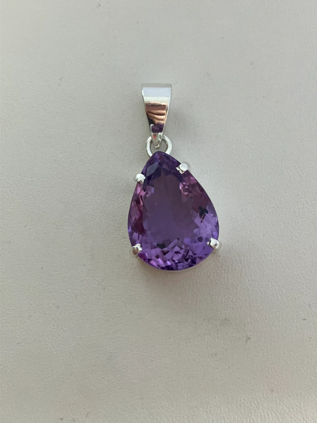 This is a lovely amethyst gemstone pendant, perfect for adding a touch of colour to any outfit. It's in great condition and ready to wear!