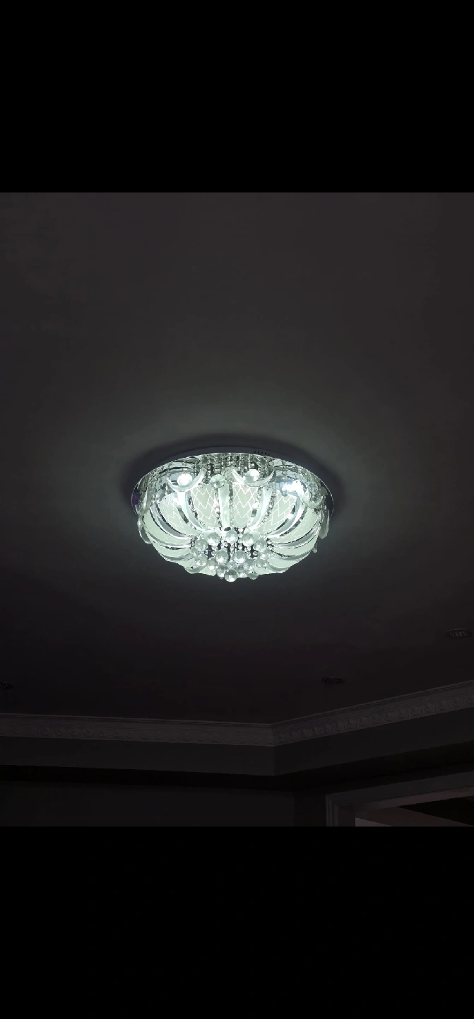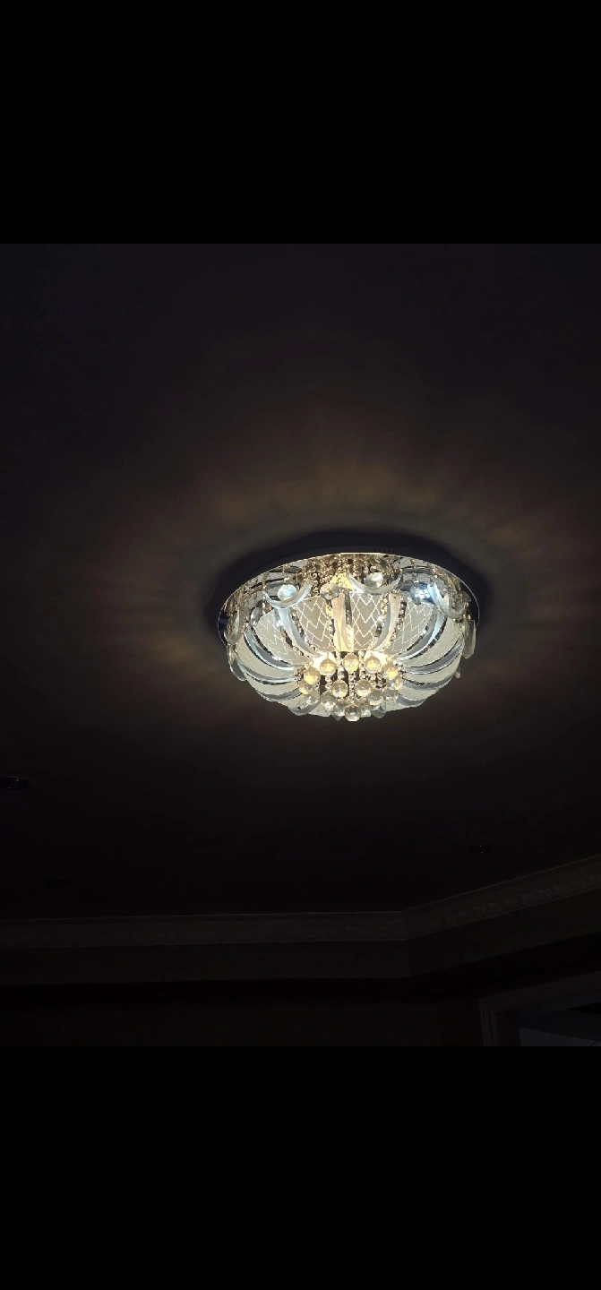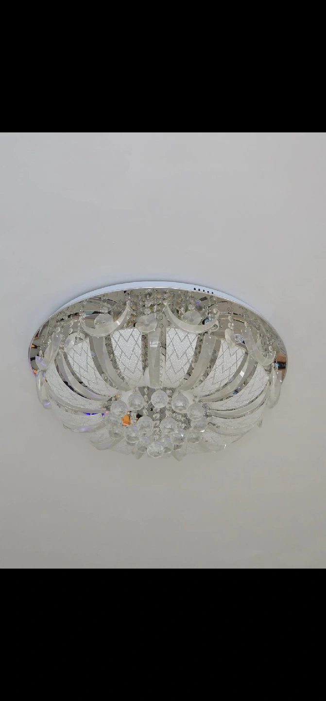 5Selling a beautiful crystal ceiling light fixture. It's in great shape and would add a touch of elegance to any room. The crystals catch the light beautifully, creating a warm and inviting atmosphere. Lights are able to change by flipping your light switch. comes with LED bulbs only (white) . 25 inch all around, 18 inch when crystals dangle down.