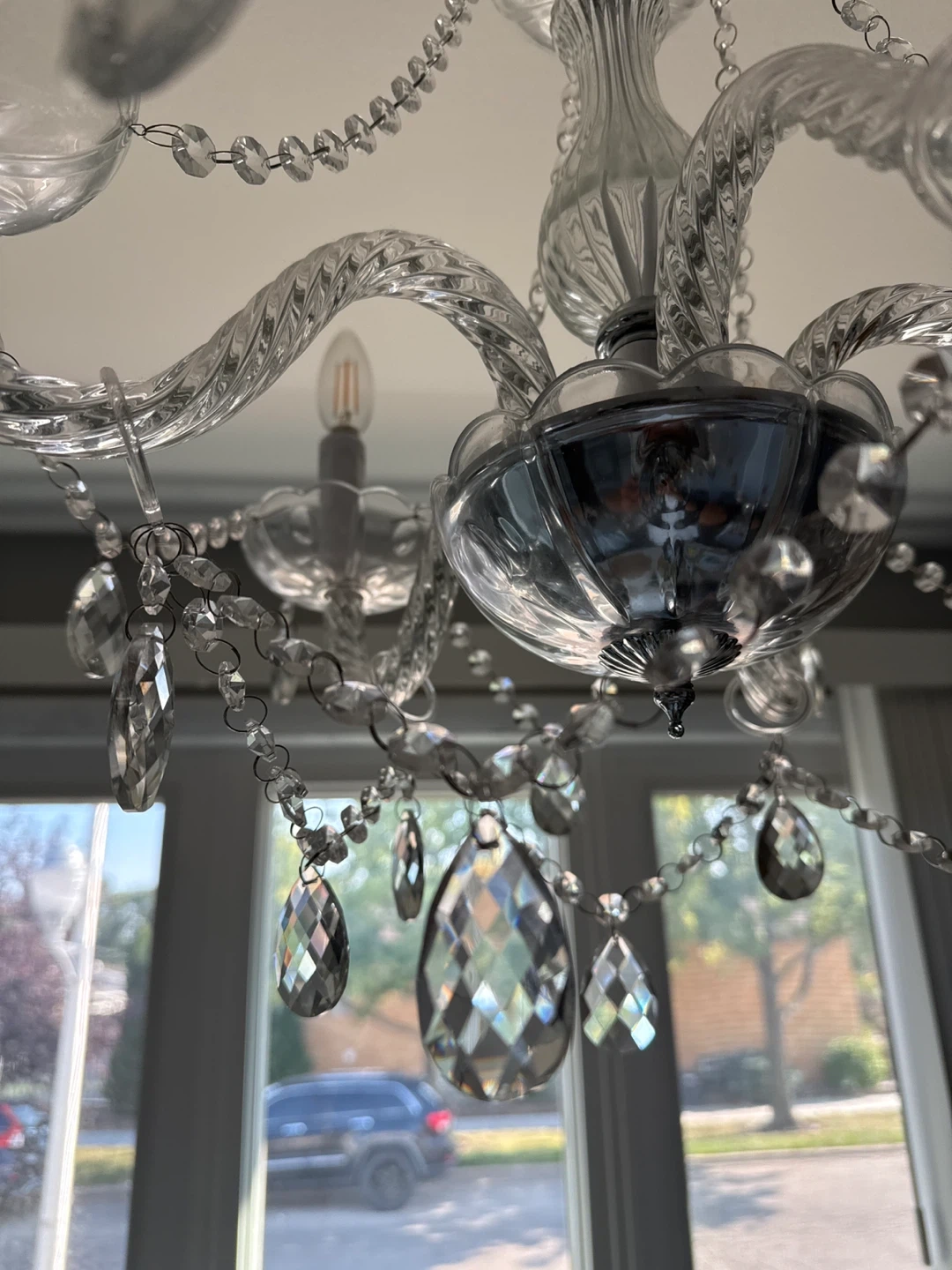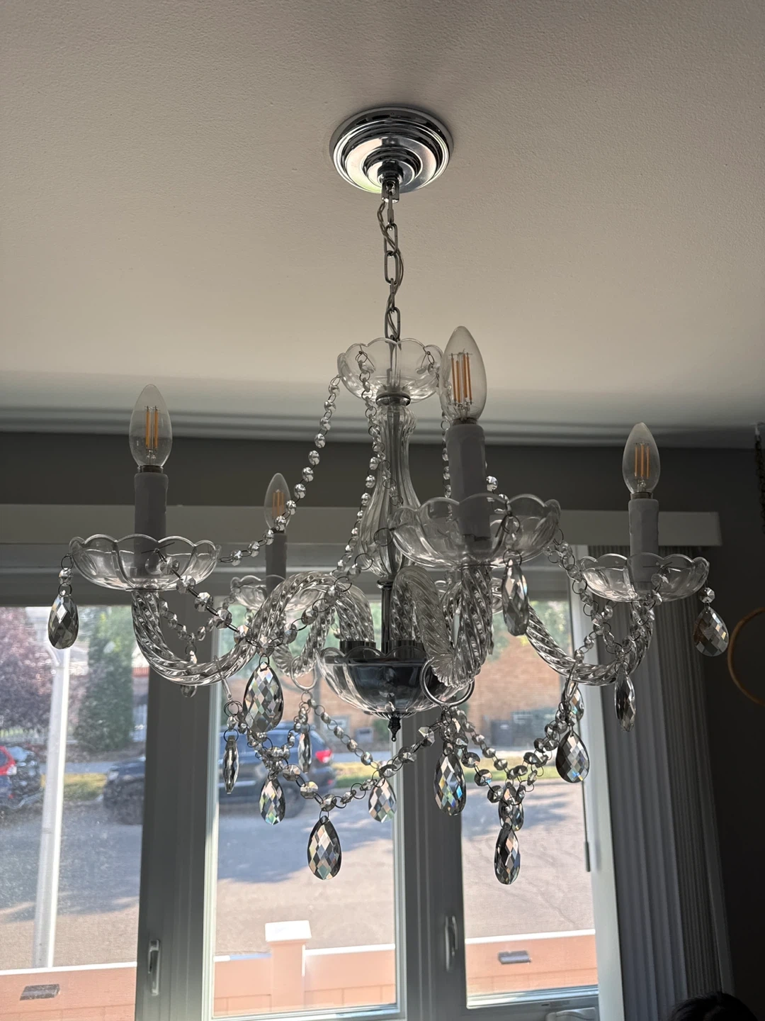 Selling a beautiful crystal chandelier! It adds a touch of elegance to any room. The chandelier is in great condition and features sparkling crystal accents.