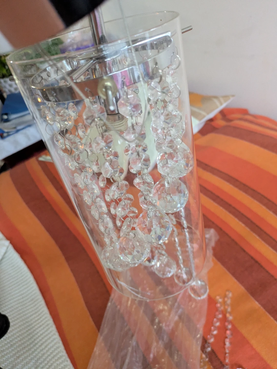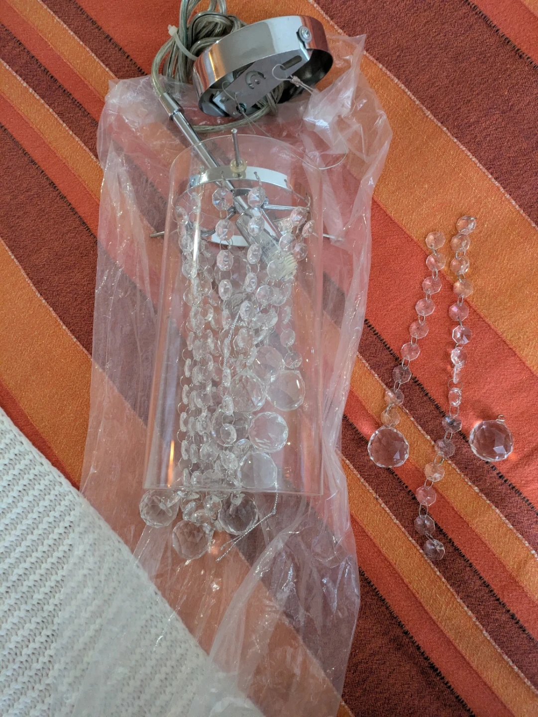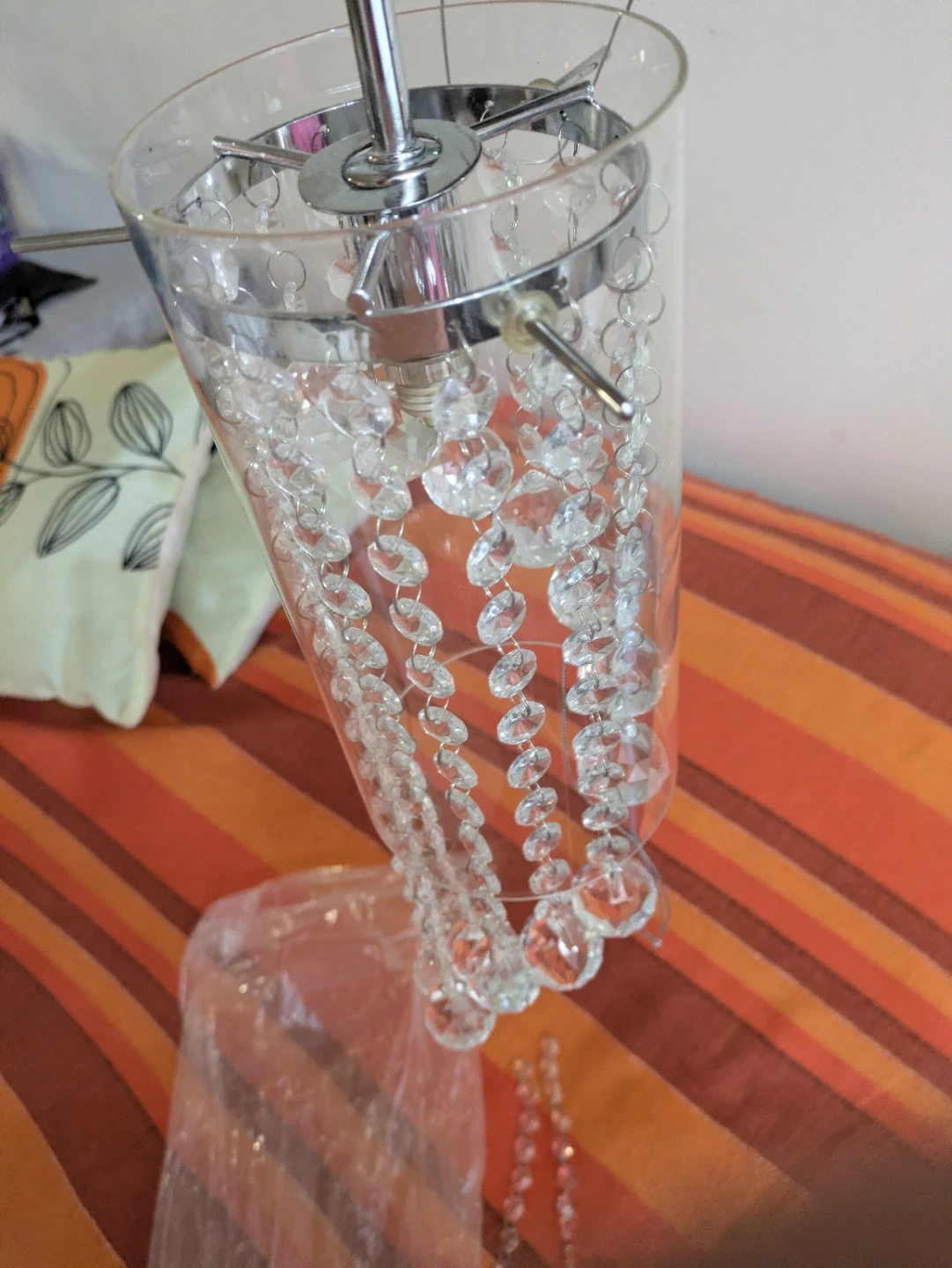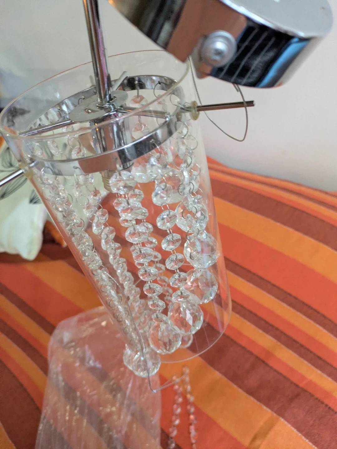 15Selling a crystal chandelier light fixture! It features strands of clear crystals and a chrome-finished base. It's in great condition and ready to add some sparkle to your home Brand new.. Location: warden and sheppard