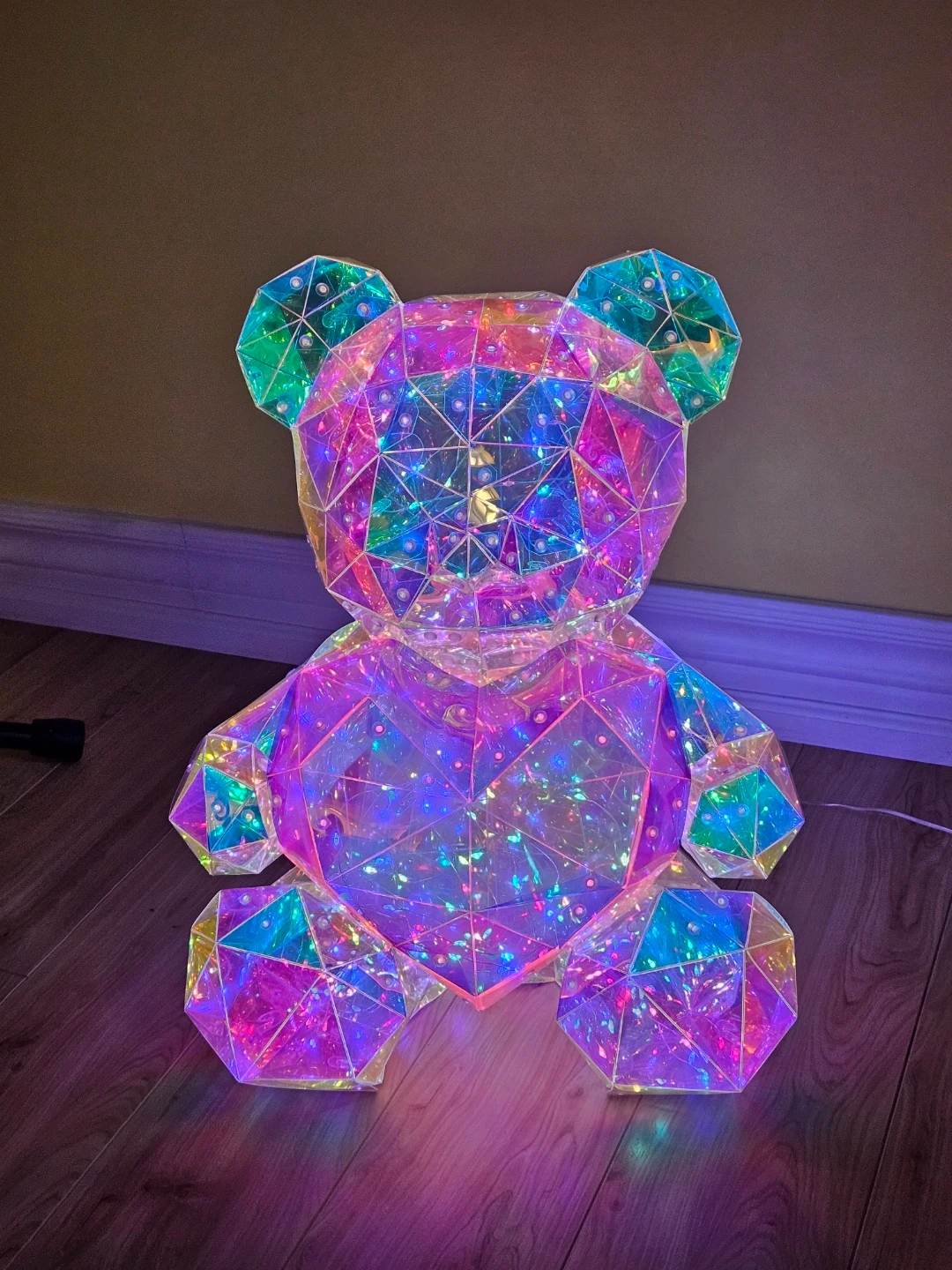 65This crystal diamond teddy bear light is a unique and eye-catching piece! It comes in its original box, making it a great gift option or a special addition to your home decor. The bear is made of a clear, geometric material that reflects light beautifully, creating a dazzling display. Powered by USB cable (included)