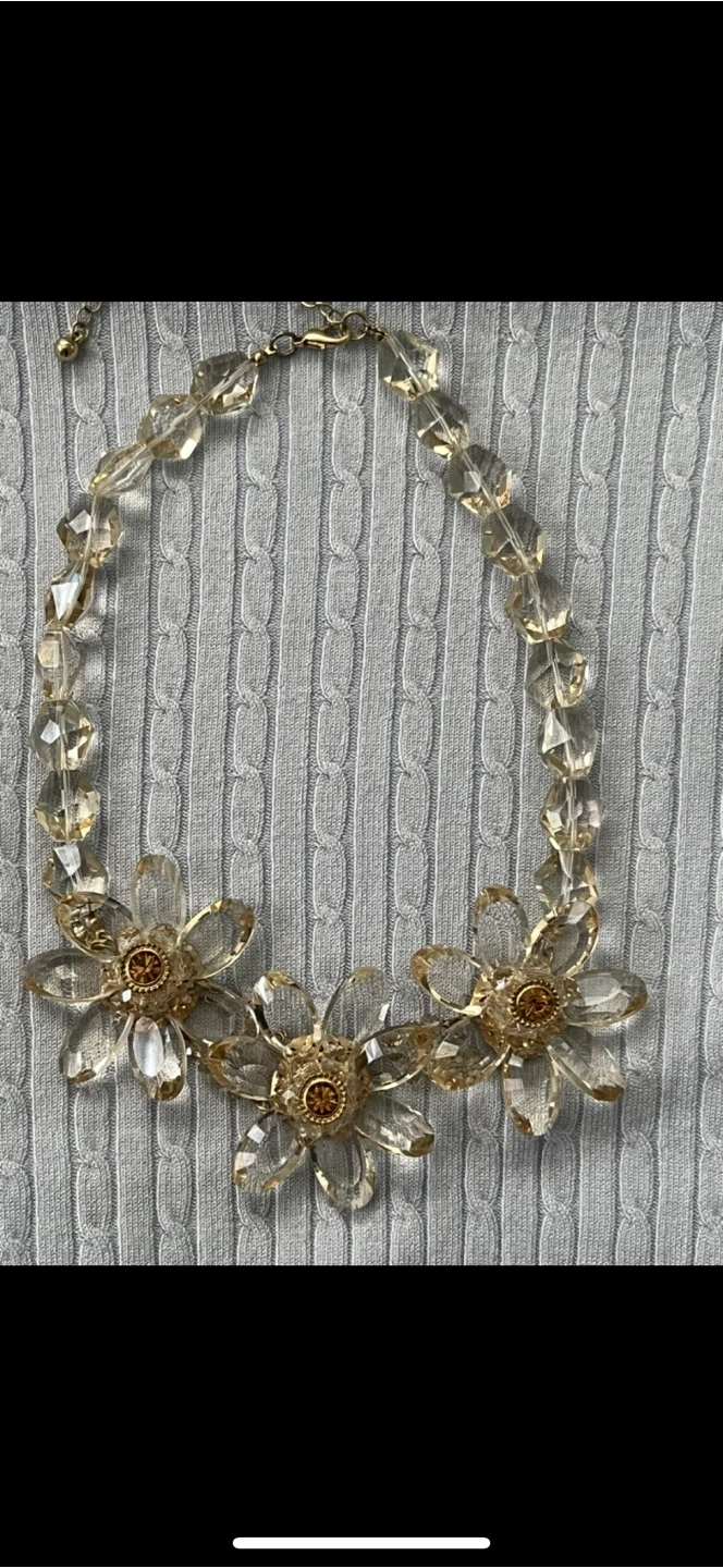 1000+This is a beautiful crystal necklace with flower accents. It's in great condition and would be a lovely addition to any outfit