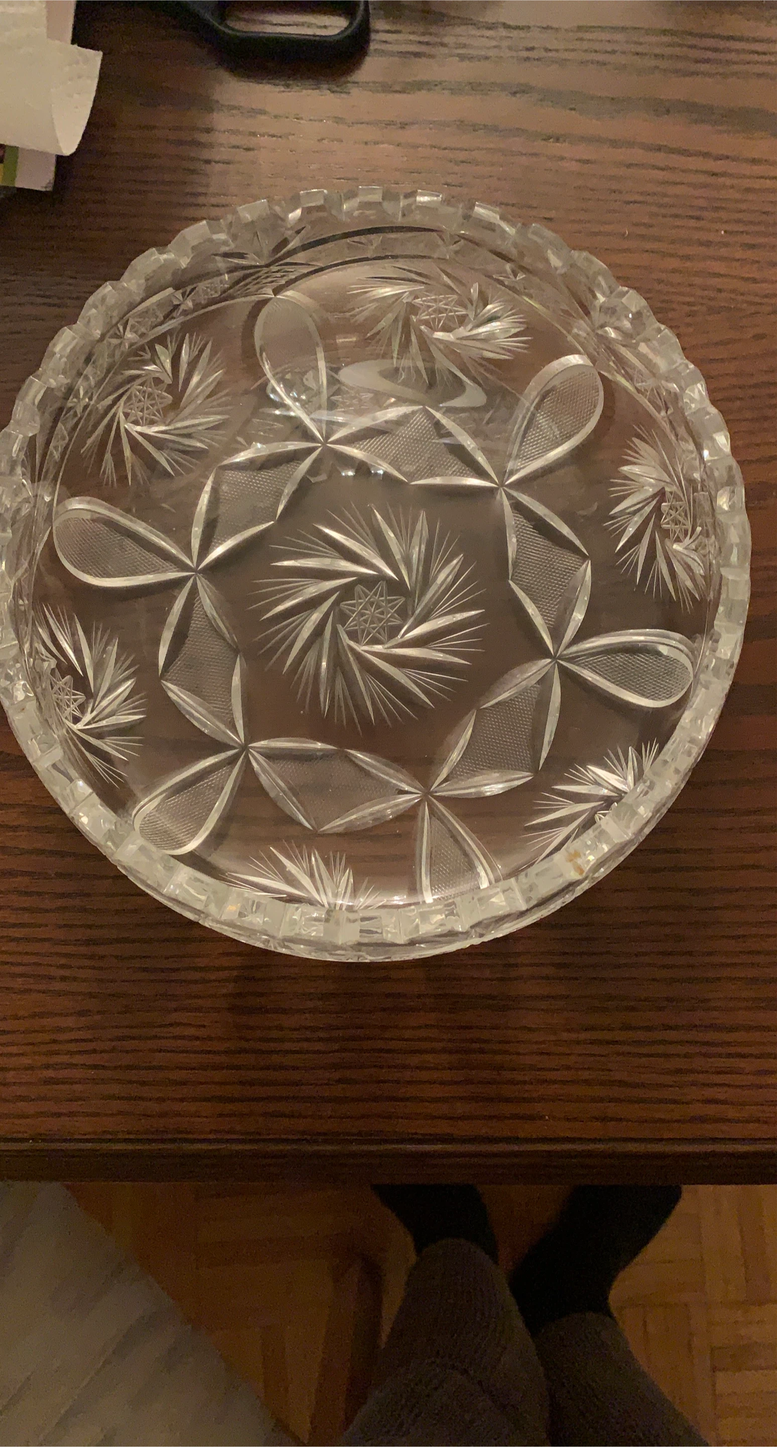 46Selling a beautiful crystal glass bowl. It has a lovely design and would look great as a decorative piece in your home. It's in used condition.