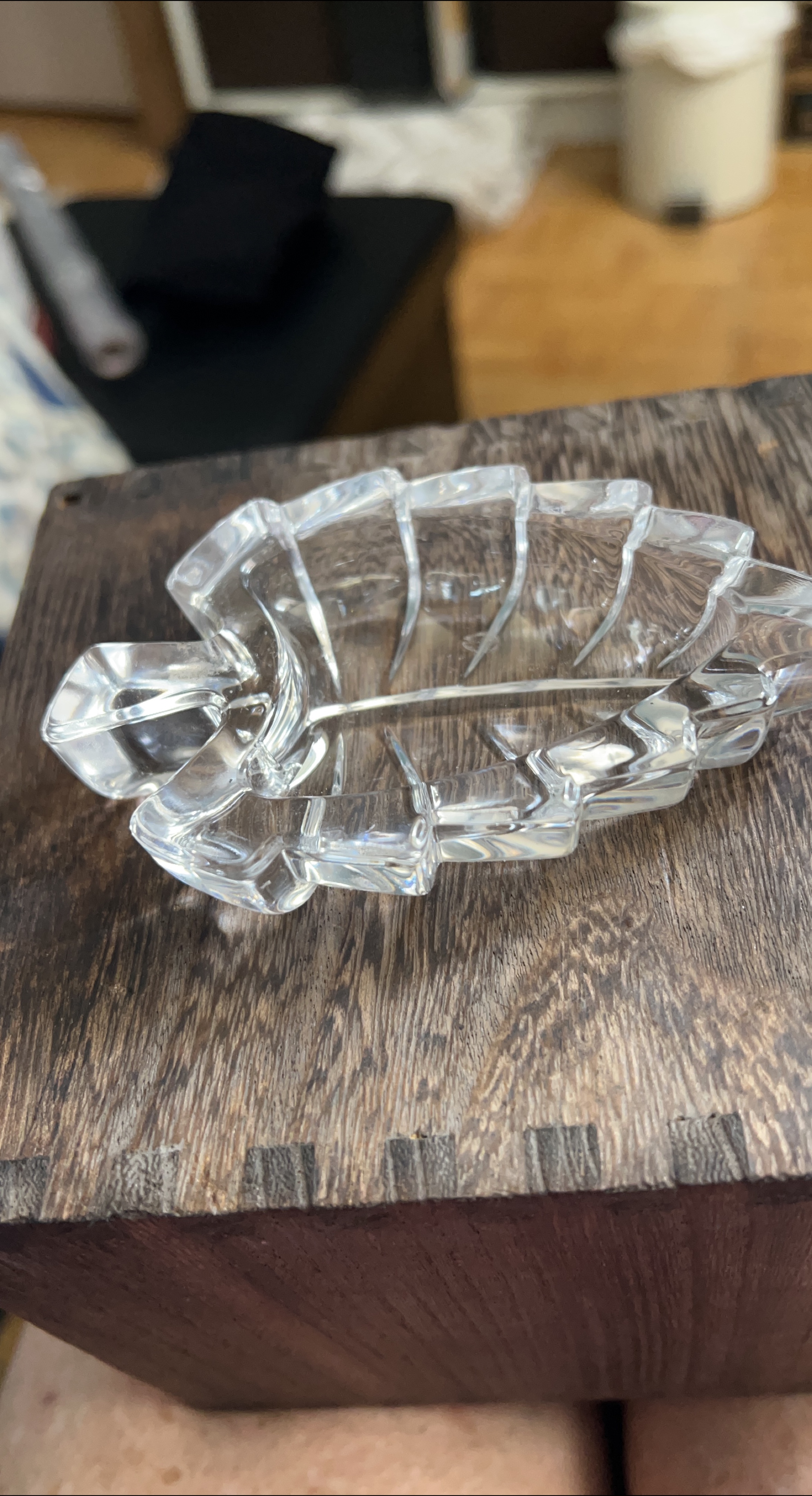 46Selling a lovely crystal leaf-shaped dish. It's in great condition and would look lovely on a coffee table or entryway