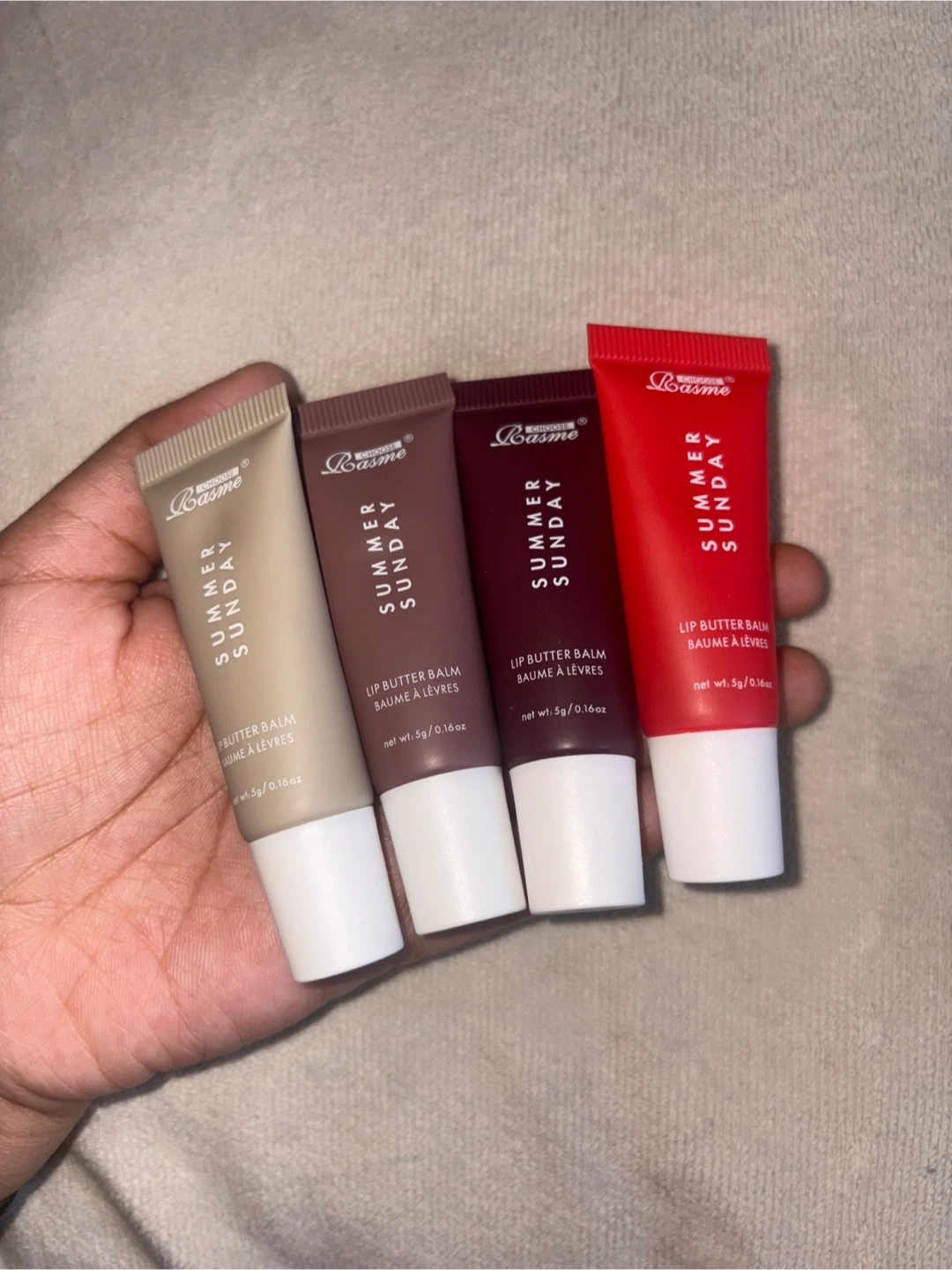 Selling a brand new Summer Sunday Lip Butter Balm Mini Kit! This set includes four different tinted balms to keep your lips moisturized and radiant. Each balm is 100% vegan and soothes dry lips. The kit includes the box