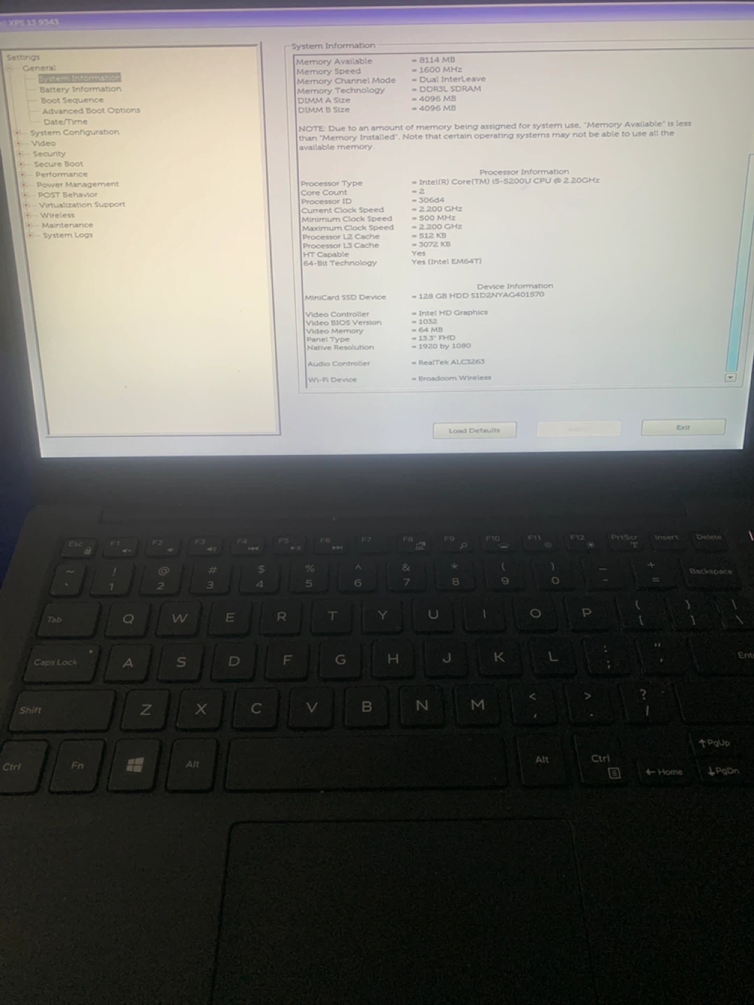 This Dell XPS laptop is equipped with an Intel Core i5-5200U processor. It has 8GB of RAM and a 128GB SSD. The screen is a 13.3-inch FHD display with a resolution of 1920 by 1080. Broadcom wireless is included. Brand new battery!