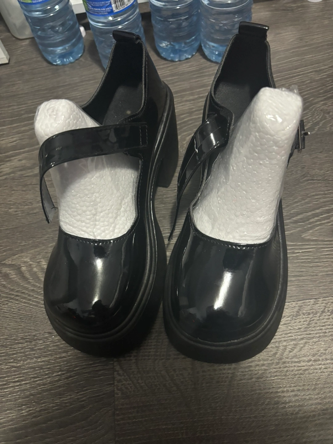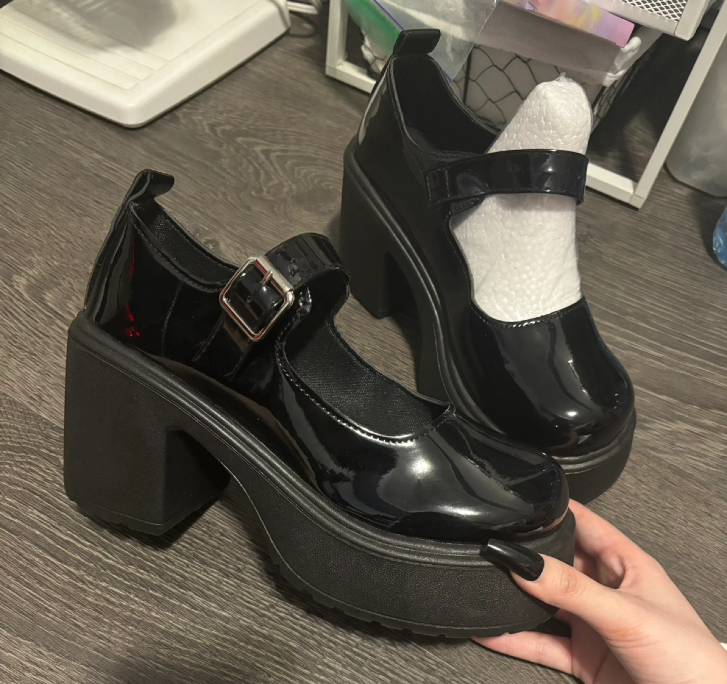 Super cute and coquette black chunky heels. They are good for walking as well because the chunky heel makes it comfortable :) so so cute but sadly itโs too small for me so Iโm letting someone else love these shoes. I reordered one for myself too bc look how lovely ๐๐