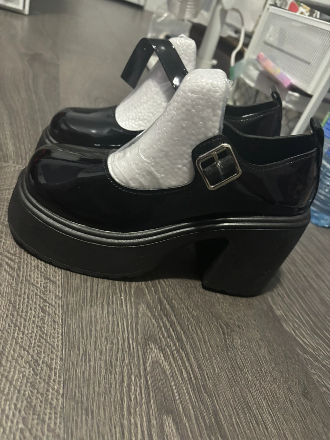 Super cute and coquette black chunky heels. They are good for walking as well because the chunky heel makes it comfortable :) so so cute but sadly itโs too small for me so Iโm letting someone else love these shoes. I reordered one for myself too bc look how lovely ๐๐