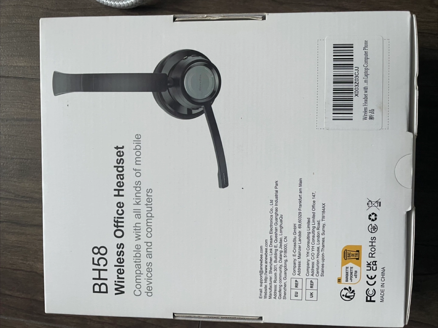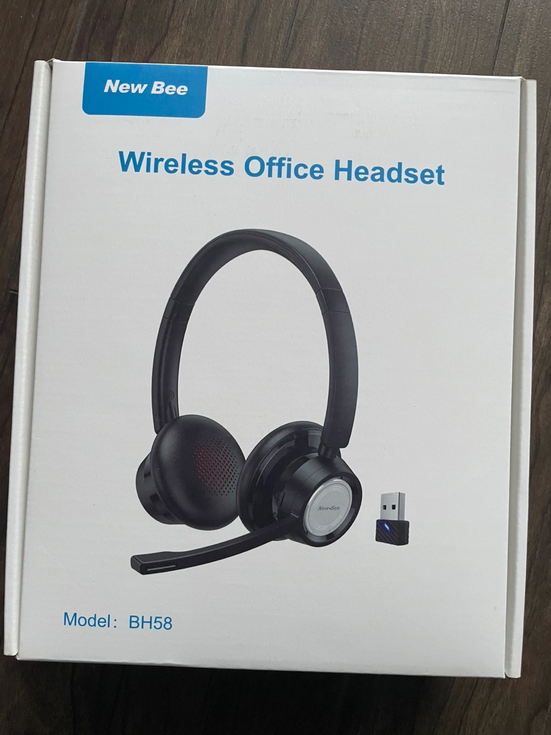 This New Bee BH58 is a wireless office headset. It features a retractable headband, soft memory ear pads, and a rotatable microphone. Compatibility is wide for mobile devices, computers, and laptops. It also offers clear sound quality and a microphone mute function.