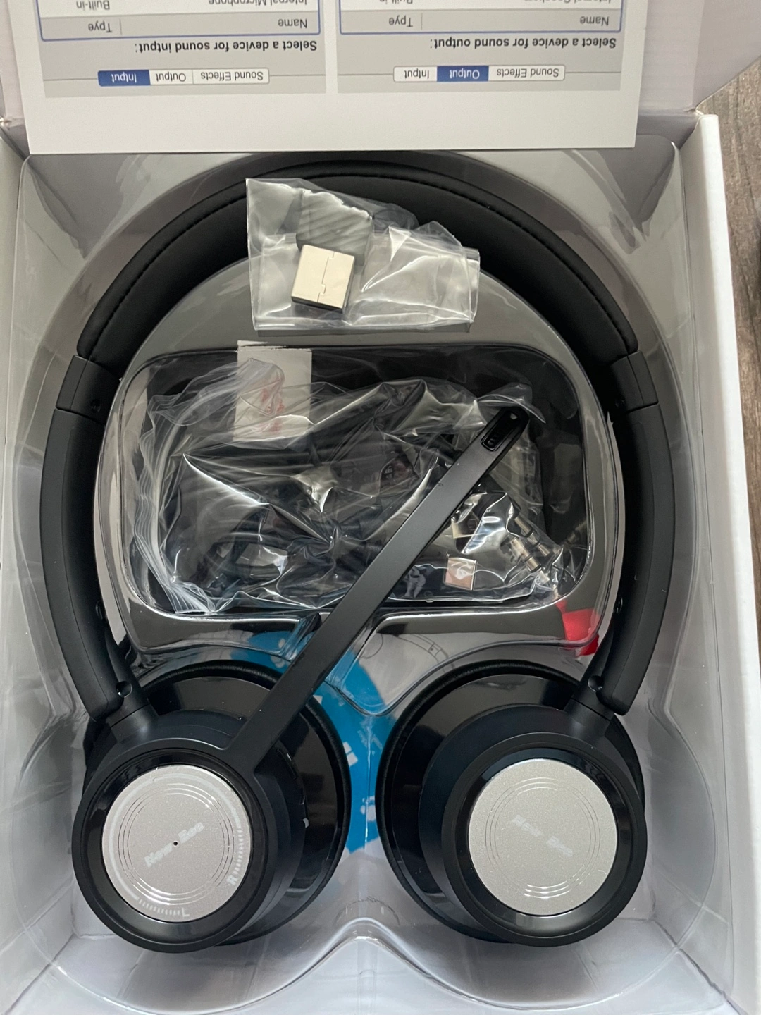 This New Bee BH58 is a wireless office headset. It features a retractable headband, soft memory ear pads, and a rotatable microphone. Compatibility is wide for mobile devices, computers, and laptops. It also offers clear sound quality and a microphone mute function.
