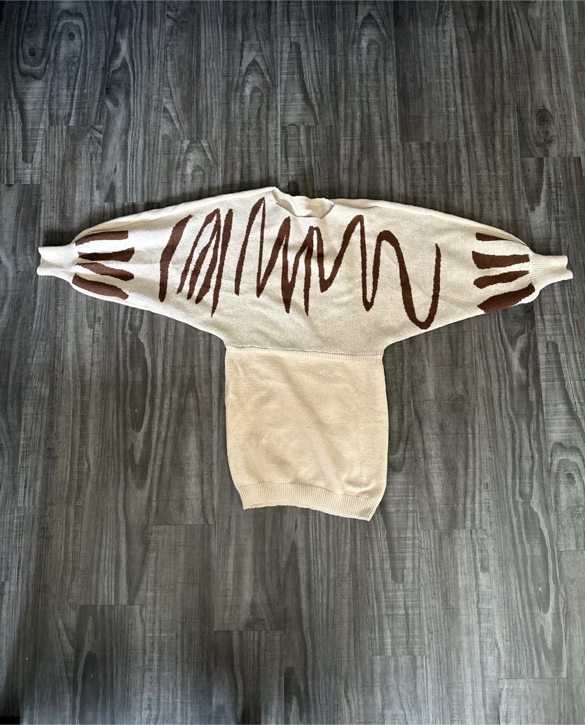 Women's Beige Knit Sweater with Brown Abstract Design