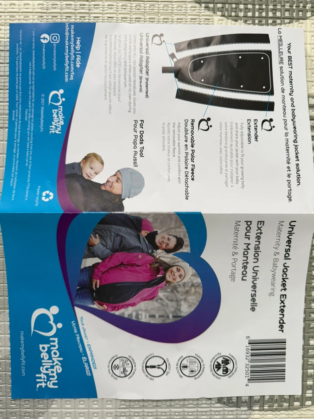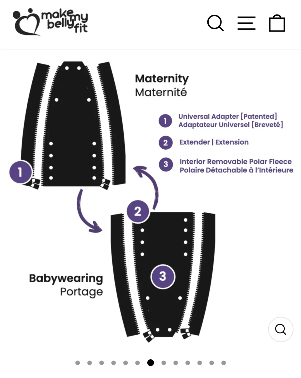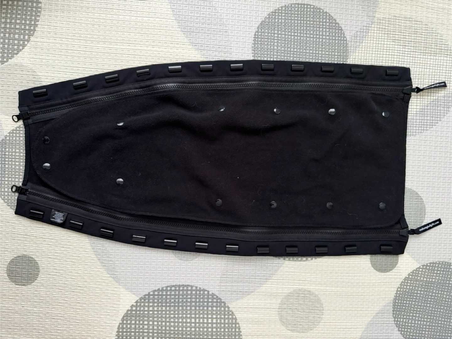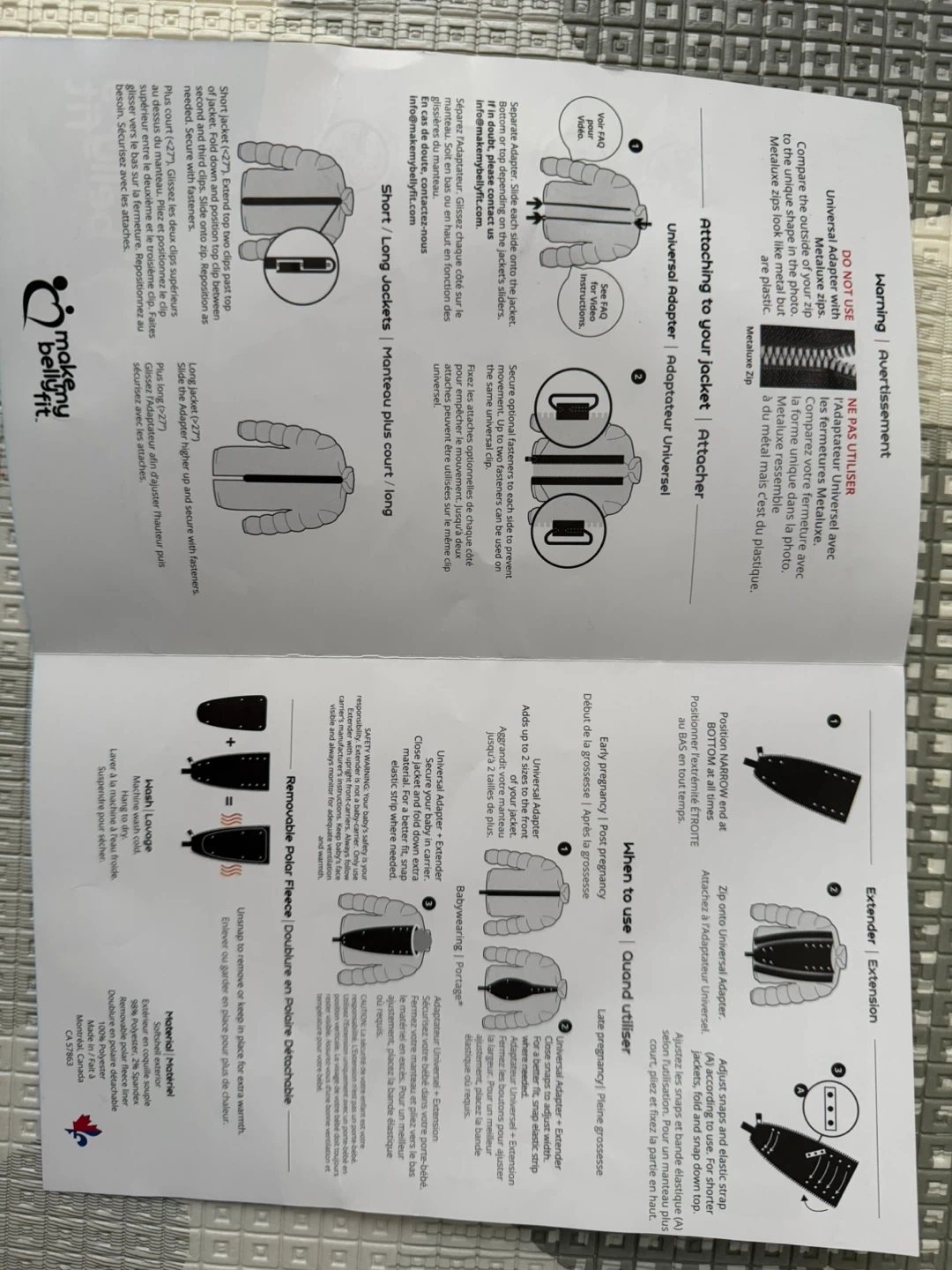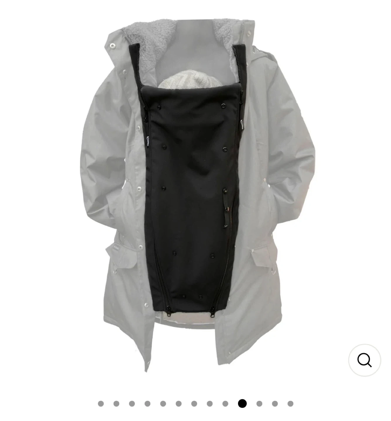 This black Make My Belly Fit Universal Jacket Extender adds warmth and comfort for pregnancy and babywearing. It's designed to zip into your existing jacket. Made with a removable polar fleece lining for customizable warmth.